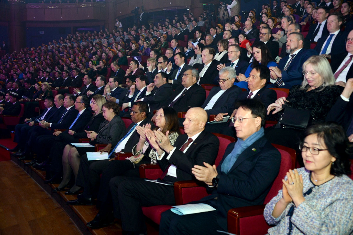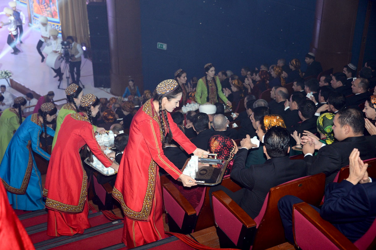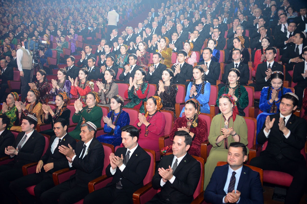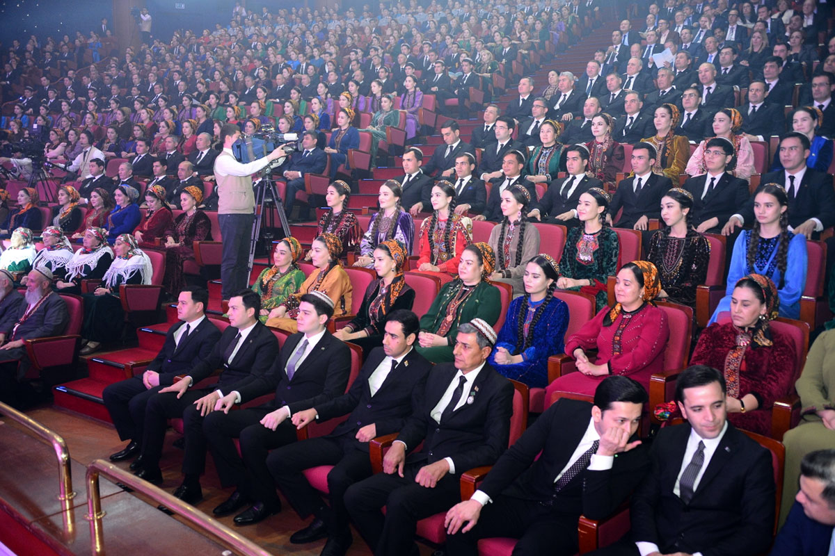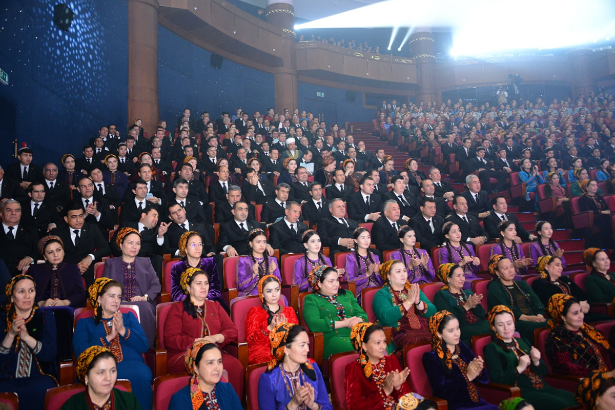 An atmosphere of special solemnity and general enthusiasm reigned at the Mukams Palace. The festive event was attended by members of the Government, leaders and representatives of the Mejlis and the Halk Maslakhaty, diplomatic missions and international organizations accredited in our country, public associations, media, ministries and departments, as well as ambassadors of Turkmenistan to foreign countries, creative community, elders and students.