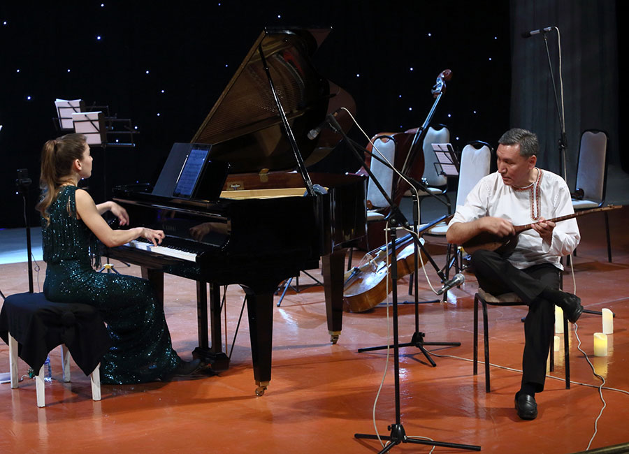 Osman Gujimov appears on stage with the dutar. He performs the Turkmen folk melody "Nar agajy" in a duet with Joanna Goodall. The sounds of the piano and dutar blend together. Who can claim that meetings of such musicians did not happen during the time of the Silk Road? And as if to confirm this, the duo performed a German dance melody "Allemande".