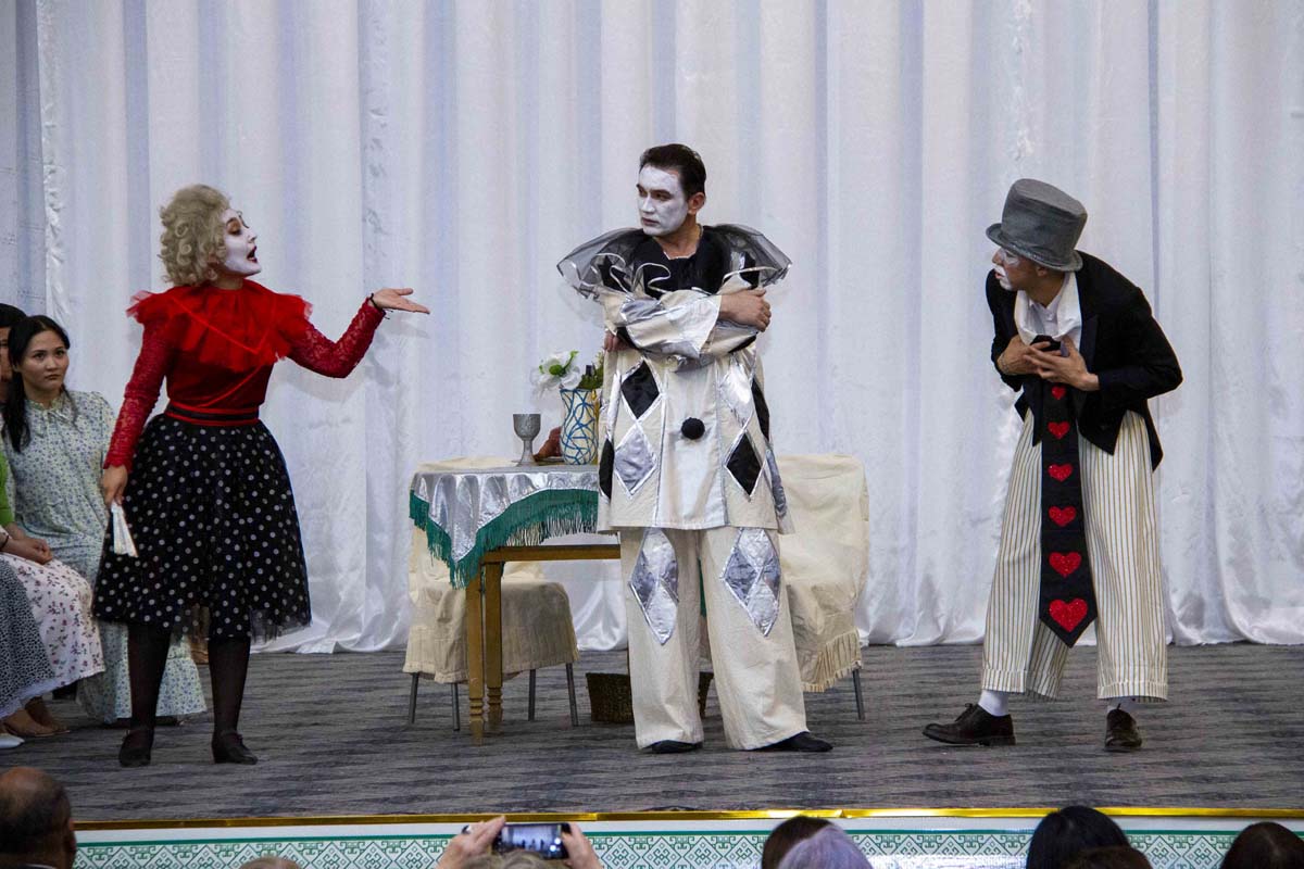 An extraordinary event took place in the Great Hall of the Turkmen National Conservatory named after M. Kulyyeva - a screening of Ruggero Leoncovallo’s opera «Pagliacci». Singers and musicians from among students and teachers actively participate in opera productions, which are staged annually at the National Music and Drama Theatre named after Magtymguly. But within the walls of the conservatory, staging an opera is a rather rare occurrence.