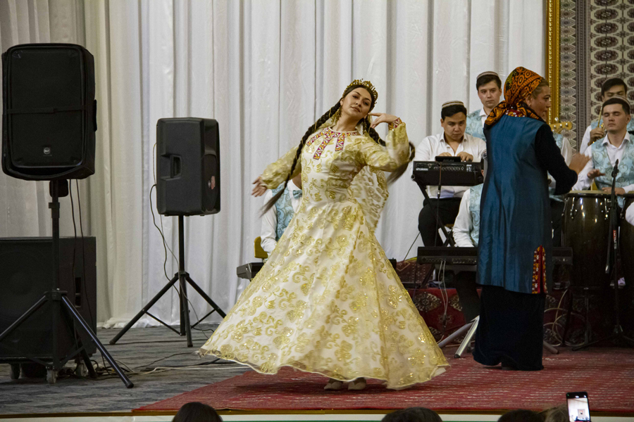The concert program itself opened with the Turkmen folk song «Bilmen» performed by Amantagan Bayjanov. The performance of the aspiring pop vocalist was accompanied by a dance group from the choreographic department of the Turkmen State Music School named after Danatar Ovezov.