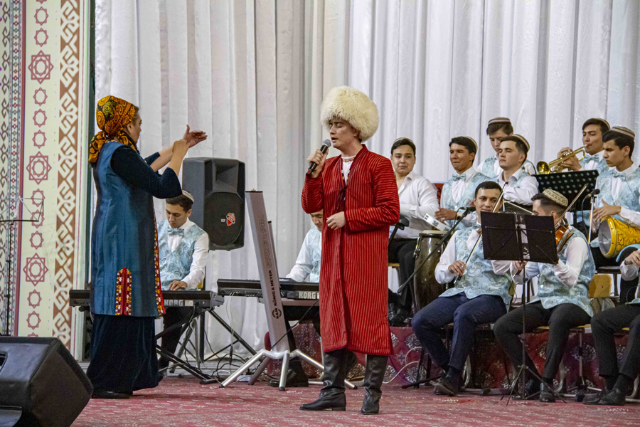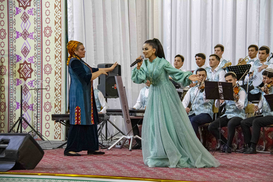 Iskender Nurmuhammedov, Sahy Allayarov, Humay Kakayeva, Leyli Mammedova performed before the audience. Tazegul Bayramova. It is noteworthy that the audience received the performance of Sahy Allayarov’s songs with delight. All the soloists ended the concert with a joint performance of the song «Dünýä Dursun Parahat».