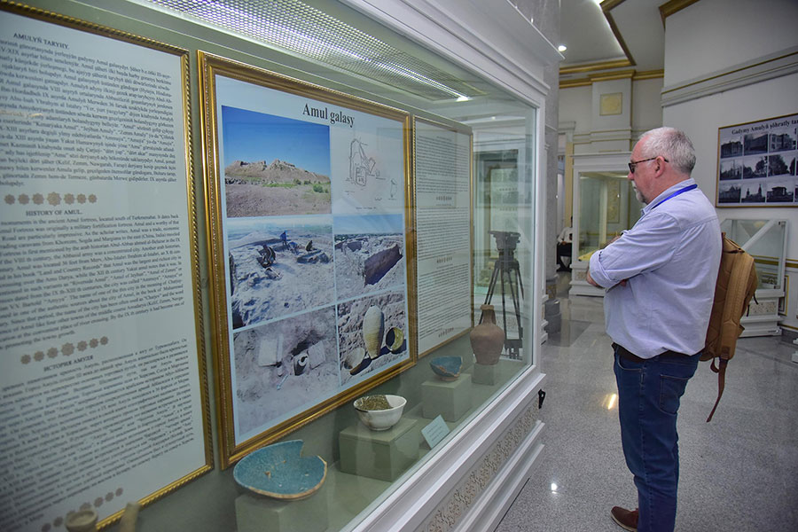 On the Amul-Merv route, unique architectural monuments have been preserved – Turkmen medieval cities, fortresses, caravanserais, which are included in the UNESCO World Heritage List. Among them are the settlements of Amul-gala and Kushmeikhan, the fortification of Mansaf, the caravanserais of Kyene-gala, at-Takhmaladzh, Akcha-gala, Kyzylja-gala. Participants of the event were familiarized with the results of archaeological research carried out on these monuments by Turkmen archaeologists and during joint expeditions with foreign scientists, as well as with finds – evidence of the flourishing of the material culture of medieval Turkmen cities located along the Great Silk Road. Many of them became exhibits in one of the exhibition halls of the State Museum of the State Cultural Center.