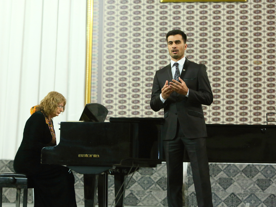 Begench Moshiev, laureate of the "Türkmenistanyň Altyn asyry" award, opened the concert program with a romance written by Nury Halmammedov to the verses of Magtymguly "Farewell to Shirgazi". The end of his studies in Shirgazi was associated with Magtymguly’s sadness, as this lovely corner largely determined the further life of the poet. And Begench Moshiev, with his artistry, subtly conveyed the emotional state of the young man.