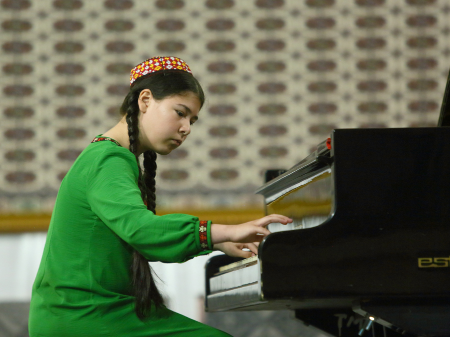 Composer Ayna Shirova presented two of her works. Since these works were included in the cycle "From children's album", young pianists were invited to perform them. Aya Ovezova, eighth-grader of the Special Music Boarding School, performed the "Sonatina", Teyla Shirova, fifth-grader of the Ashgabat Music School No. 1, performed the piece "Waiting for Guests". The ending of the second piece was creative: Teyla tapped the piano with her fist - this meant that the guests were already at the doorstep.