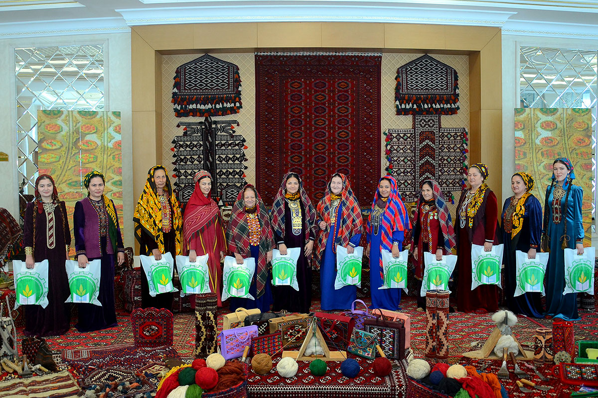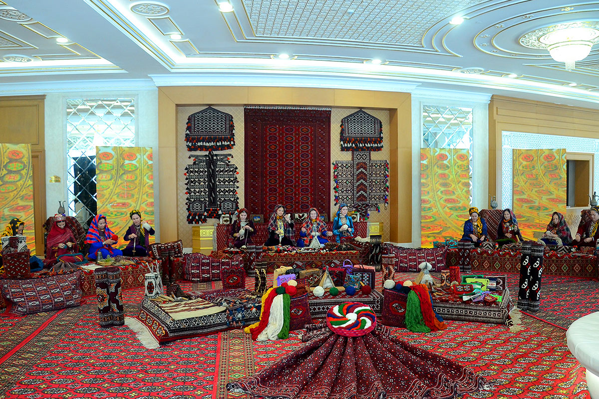 It is organized by the State Association "Türkmenhaly", the Central Council of the Women’s Union of Turkmenistan and the National Center of Trade Unions of the country. The exhibition competition is taking place in the "Türkmeniň ak öýi" building in Balkanabat.