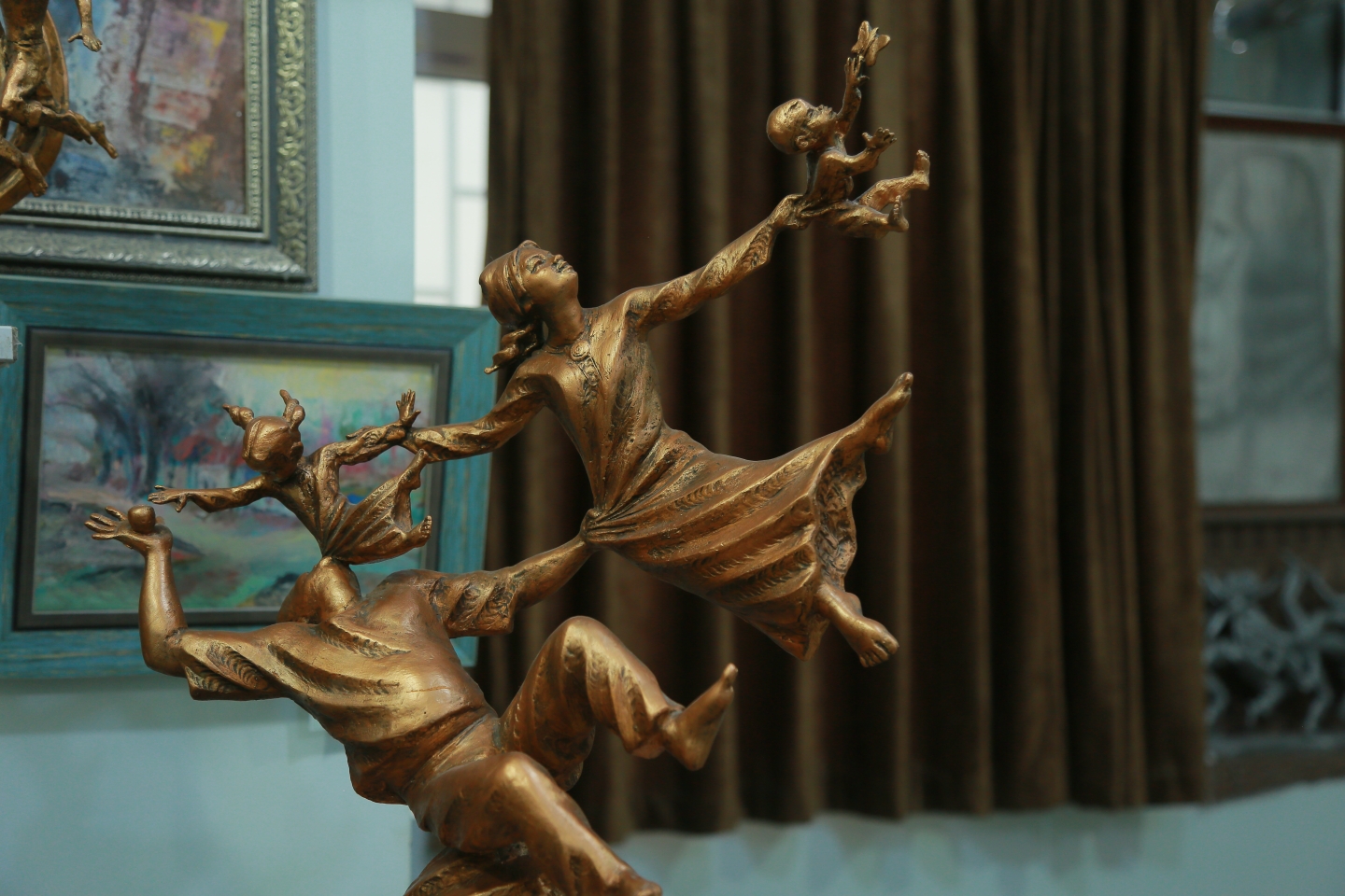 Вместо ответа на вопрос «Какие работы Ваши самые любимые?», художник достаёт две скульптуры – «Радость», в которой он кружится со своей дочерью Энеджан, и «Семья», где папа является основой всей композиции и удерживает Энеджан, которая крепко держится за мамину руку, а мама свободной рукой удерживает сына Юнуса.