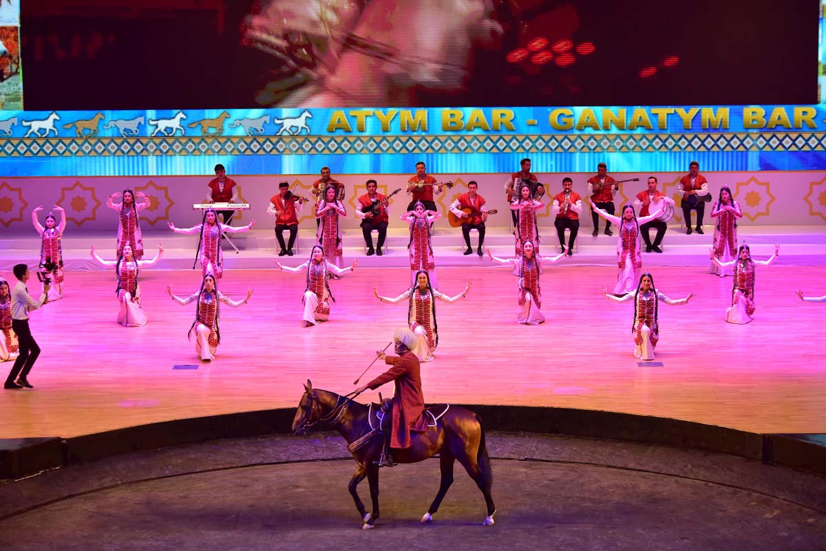 Кульминацией торжества стали показательные выступления группы «Galkynyş». Захватывающие трюки джигитов и девушек на стремительных скакунах вызвали восторг у зрителей.