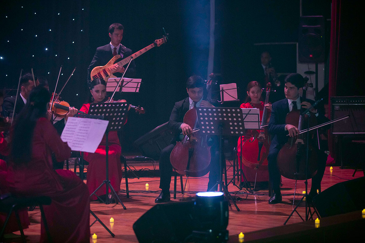 С сольным номером на виолончели выступил руководитель оркестра «Мелодия» Аннаораз Довлетов. Он исполнил фрагмент из кинофильма «Сумерки». После успешного выступления под аплодисменты зала Аннаораз преподнёс цветы женщинам первого рядя и корзину цветов своей маме.