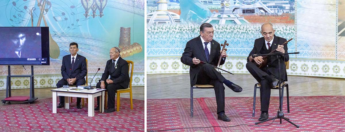 О месте музыке в жизни народа и месте Шукур бахши в туркменской музыке говорили преподаватели консерватории Реджеп Аннамурадов и Гунча Мухамметбердыева, которая, кстати, является выпускницей душакской музыкальной школы им. Шукура бахши, а также земляк Шукура бахши – учитель средней общеобразовательной школы №12 города Душак Нурназар Джуманазаров. Помимо преподавания в школе, Нурназар занимается писательской деятельностью. Среди авторских книг, с которыми он познакомил присутствующих, есть книга о Шукур бахши. Он подарил ее с дарственной надписью консерватории.