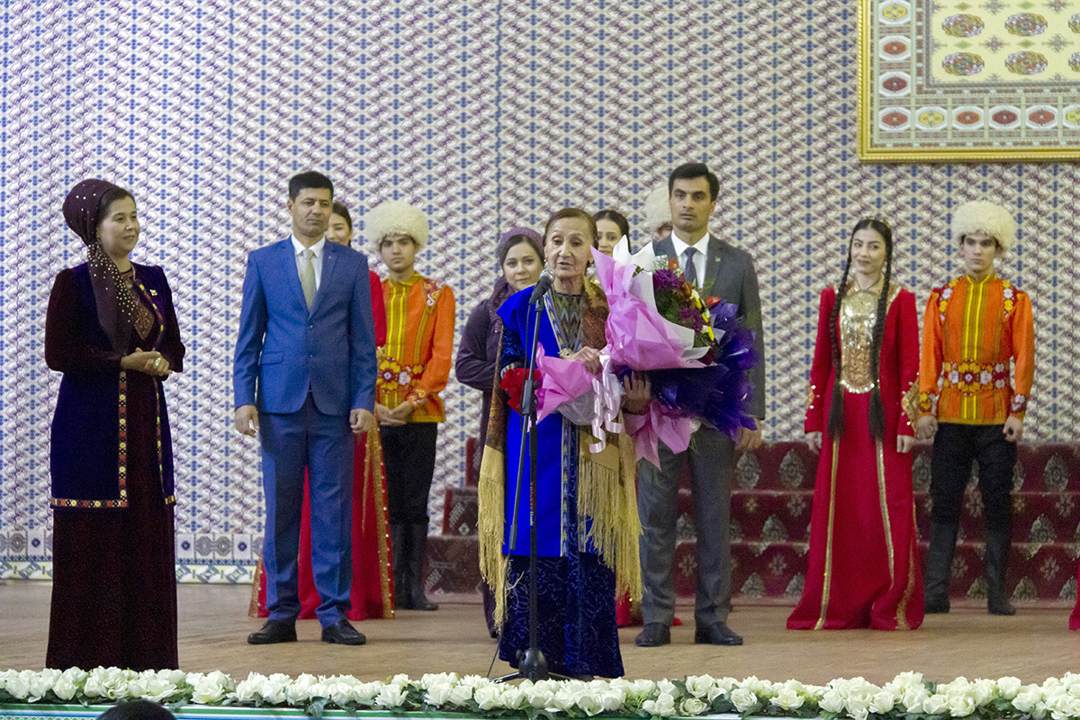 В заключении вечера-посвящения со своими воспоминаниями об отце, рано ушедшим из жизни, поделилась со слушателями дочь Еламана Хуммаева заслуженный деятель искусств Туркменистана Гузель Хуммаева.