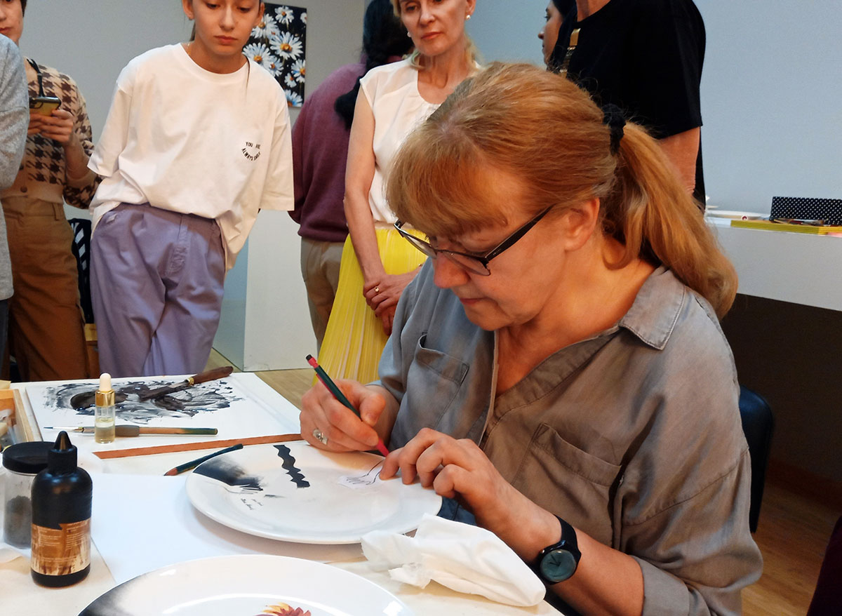 Для любителей данного ремесла Илона Ромуле также провела открытые уроки в ашхабадском Центре культуры нефтегазового комплекса. Здесь освоить азы ручной росписи керамики могли непрофессиональные художники, а также дети и их родители.