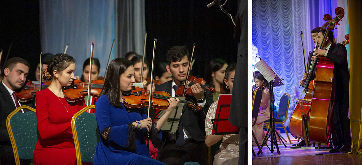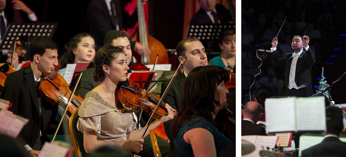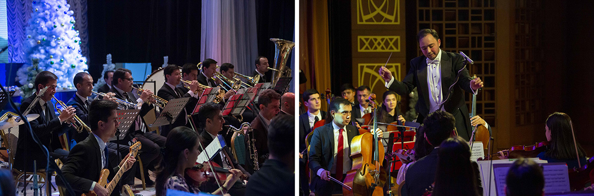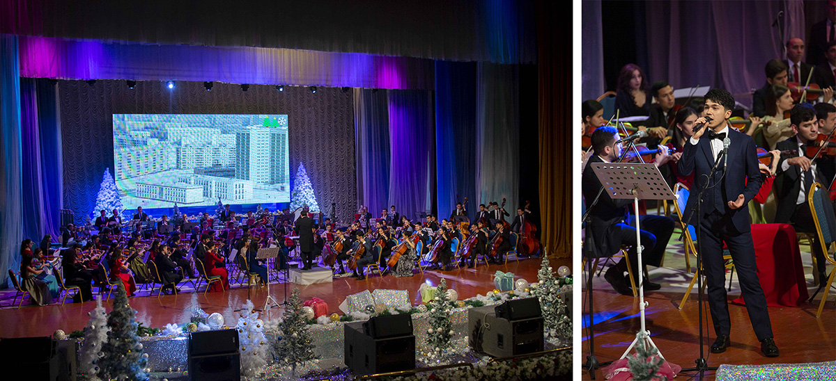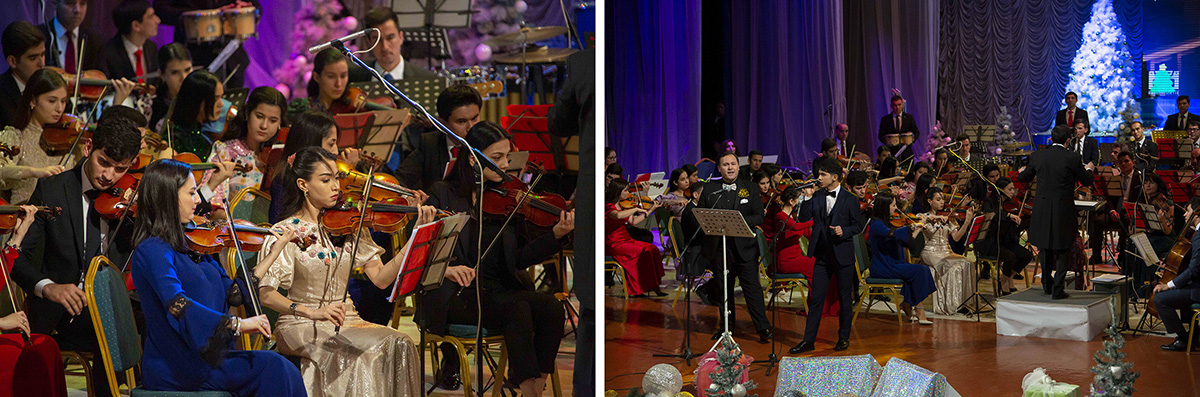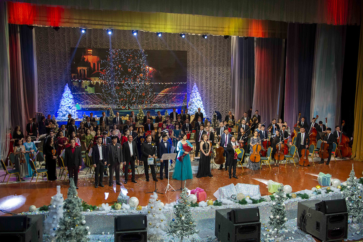 Музыканты Государственного симфонического оркестра Туркменистана под управлением Расула Клычева собрали аншлаг во Дворце Мукамов, подготовив для слушателей «Новогодний огонек» из музыкального оформления любимых кинофильмов.