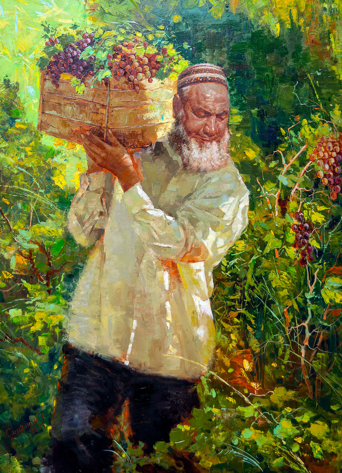 В ряде работ поднята тема пожилого человека. Замечательная картина «Щедрая земля» Тойли Чопанова передает образ счастливого яшули, бережно несущего ящик с виноградом. Улыбающийся пожилой человек в многочисленных бликах солнца невольно вызывает радость за его удачно сложившуюся жизнь.