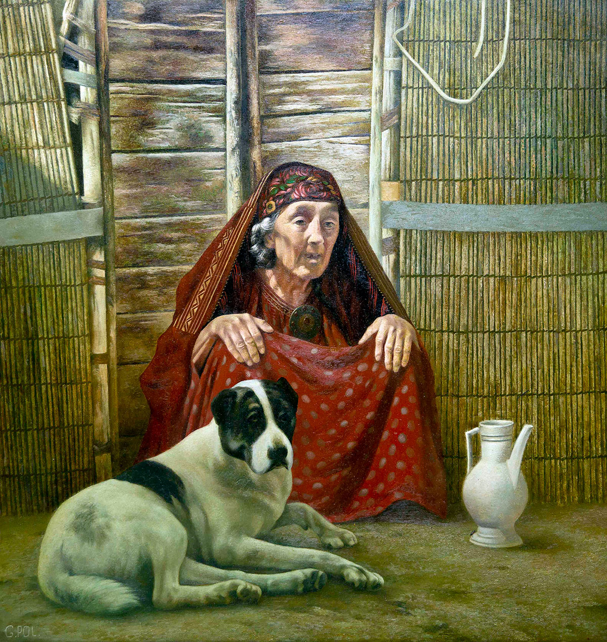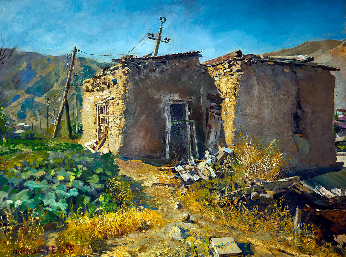 Психологическая драма предстает перед зрителями в работе Полата Гаррыева «В ожидании», на которой изображена пожилая женщина, сидящая на крыльце своего дома.