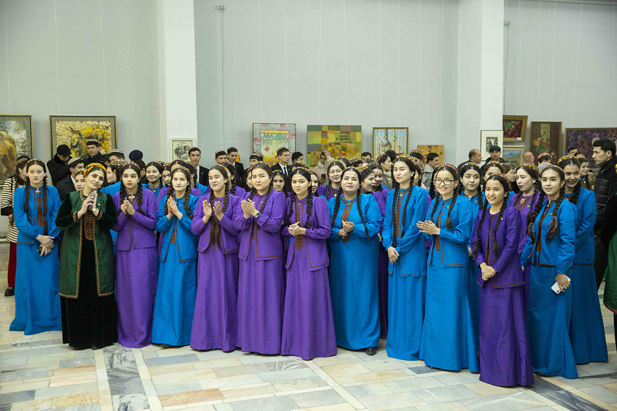 Поддержать своих учителей пришли на открытие выставки студенты училища, а также знаменитые певцы – Атагельды Гарягдыев, Атаджан Бердыев, Бегенч Мощиев и другие, устроив на выставочной площадке мини-концерт.