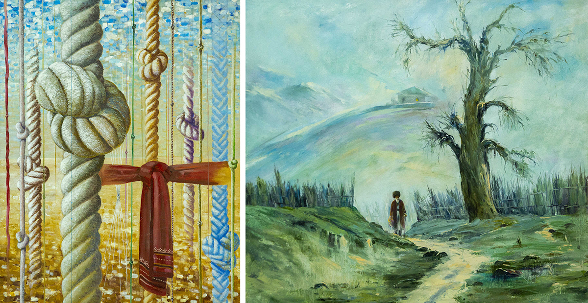 Огромное впечатление оставляет картина «По старому пути» Аманмухаммеда Аширгельдыева. На ней изображен яшули, идущий по дороге, по которой уже никто давно не ходит, здесь даже дерево засохло от старости и одиночества. Но яшули упрямо не хочет идти по асфальту, он остается верен своим давним привычкам.