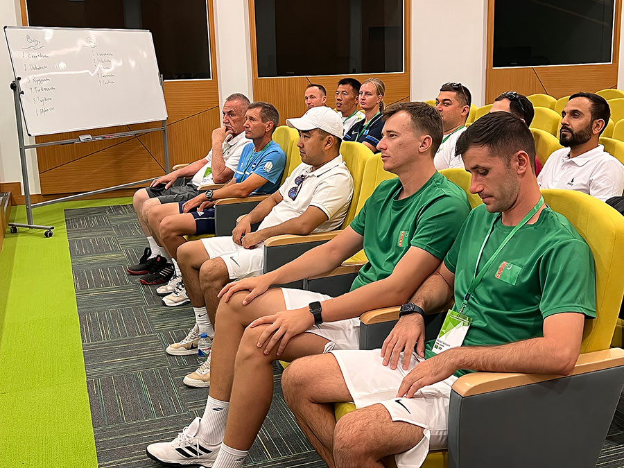 Сегодня же, в преддверии старта турнира, в теннисном комплексе Олимпийского городка представитель Международной федерации тенниса (ITF) Амир Боргеи и главный судья первенства Центральной Азии Сефтеджани Мохаммадхассан Лачинани (Иран) провели судейский семинар, в котором приняли участие 14 национальных судей из всех велаятов страны.
