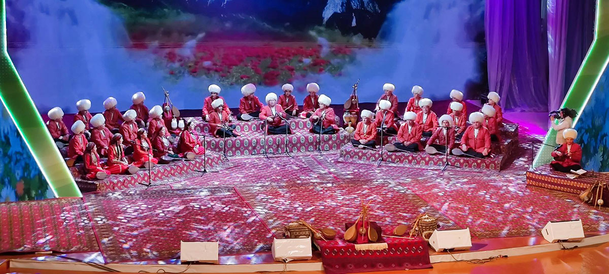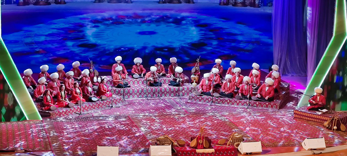 Во Дворце мукамов Государственного культурного центра собрались работники культуры, творческие коллективы, народные исполнители, представители средств массовой информации, чтобы насладиться необыкновенной музыкой дутара, являющейся своеобразным гимном священной независимости и нейтралитету нашего государства, мелодией миролюбия, благородства, дружбы и братства.