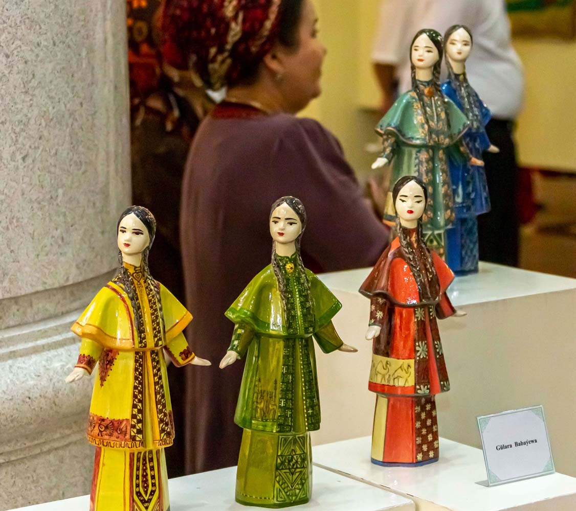 Масштабную и содержательную панораму составили произведения из коллекций велаятских и ряда этрапских историко-краеведческих музеев. Передавая особенности обычаев и традиций, характерных для разных регионов нашей страны, творческой манеры художников и народных умельцев, эти экспозиции, словно ручейки, объединились в огромное море созидательной энергии, отражающей богатство духовной жизни туркменского общества.