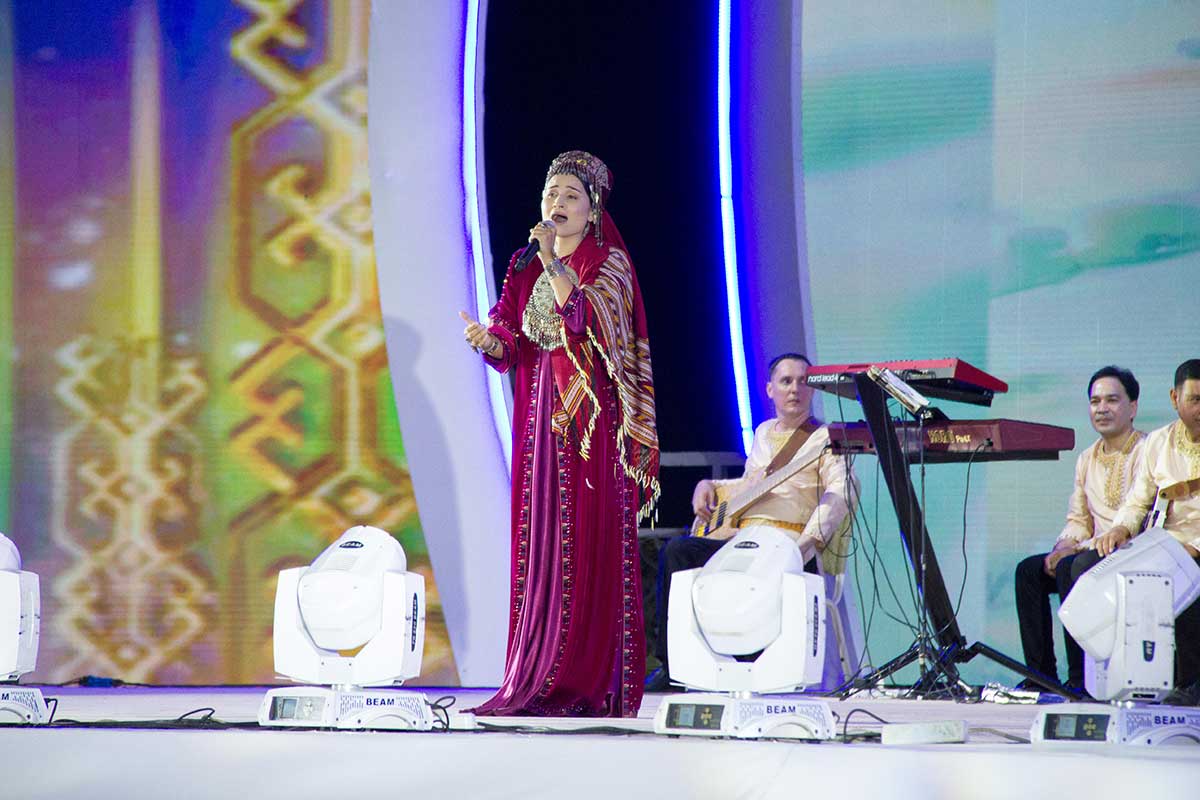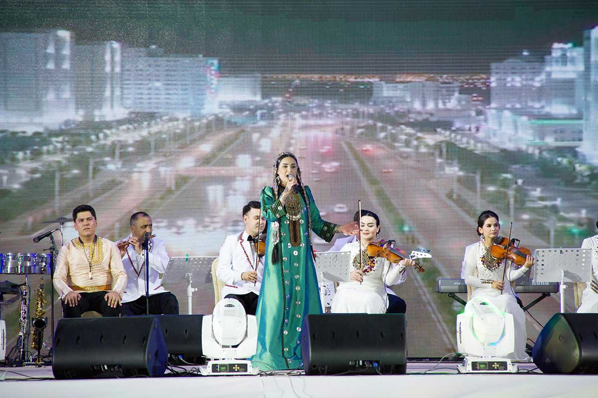 Атмосферу творческому действу задало торжественное начало концерта с песней «Ýaňlan, Diýarym!» – своеобразный гимн конкурса, исполненный всеми участниками итогового тура. Выступления конкурсантов на открытой сценической площадке, по-особому представшей в красочной палитре огней вечернего Ашхабада, стали достойным ответом на вдохновенный призыв главы государства.