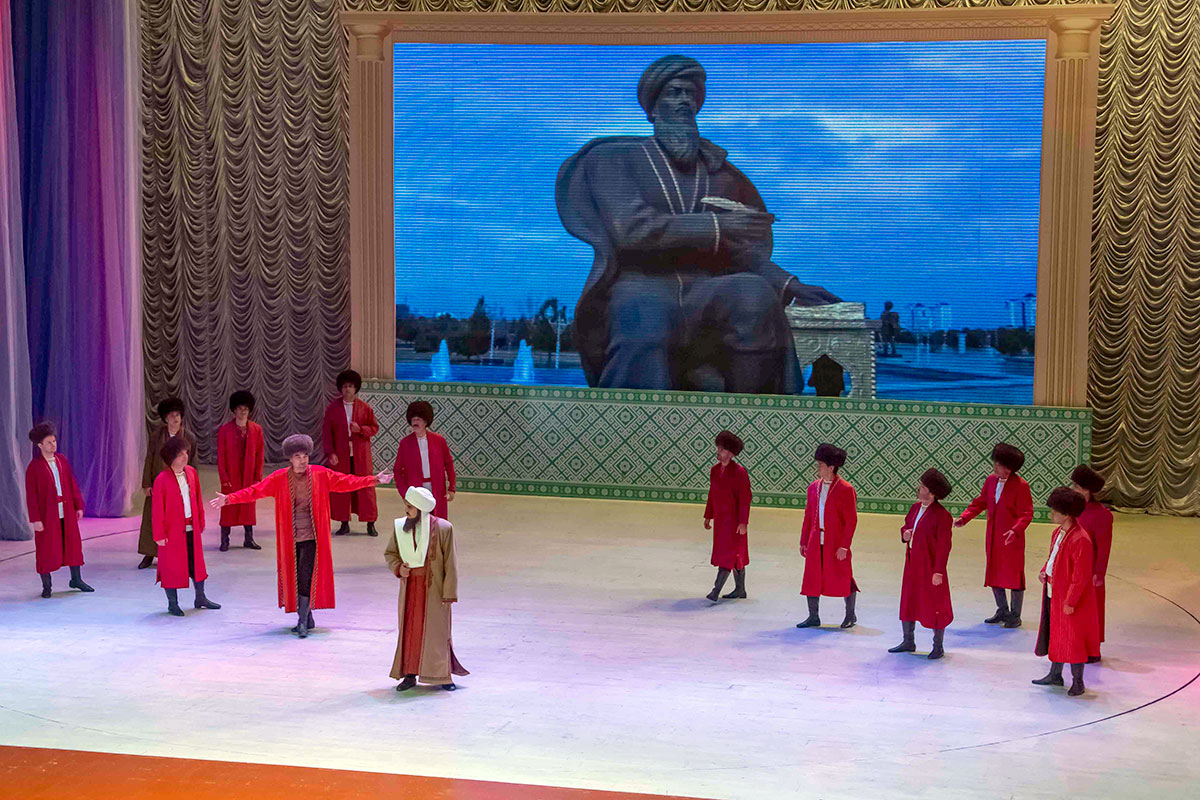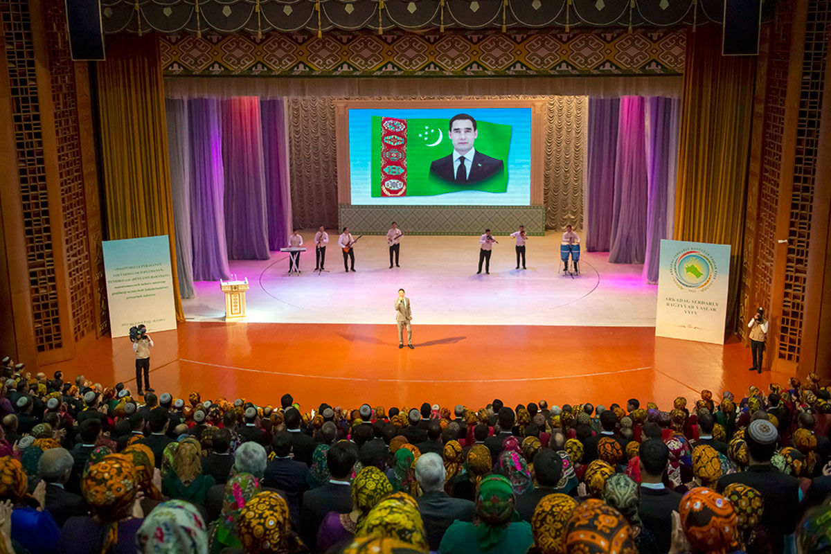 Мероприятие началось с просмотра музыкального спектакля, подготовленного артистами Национального музыкально-драматического театра имени Махтумкули.