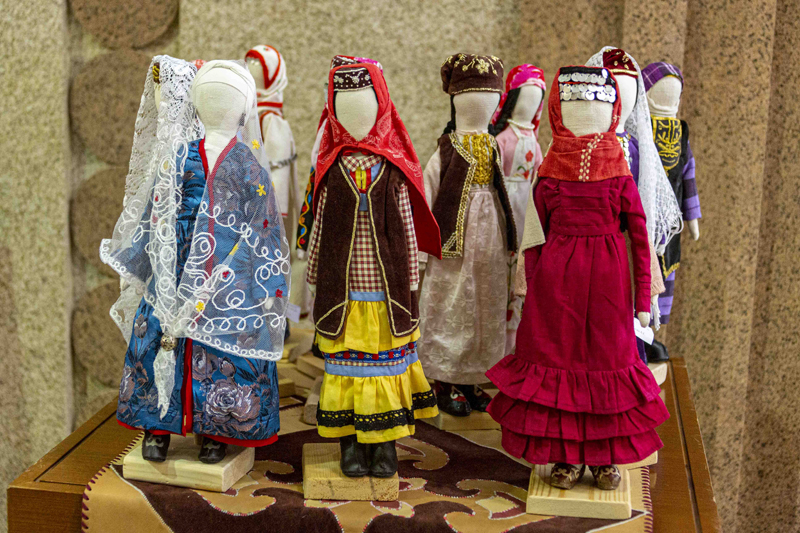 Особый торжественный настрой нынешней акции подчеркнула выставка татарских мастеров декоративно-прикладного искусства, а также экспозиция фотографий историко-культурных памятников Республики Татарстан, включённых в Список Всемирного наследия ЮНЕСКО, которая развернулась в фойе Дворца мукамов.