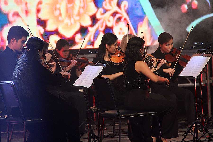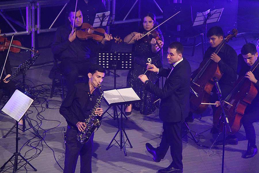 Ответ давала программа юбилейного концерта, которая охватывала все музыкальные направления – от классики до рэпа, рока, поп-музыки и т.д. Причем для концерта отбираются самые лучшие музыкальные произведения. К примеру, Вивальди-Рихтер «Summer» в исполнении первой скрипки оркестра Огулсоны Язовой. Музыка под смычком скрипачки в буквальном смысле бурлила, кипела, вибрировала. Восприятие усиливалось на фоне экрана, демонстрирующего темные грозовые тучи и сверкающие молнии.