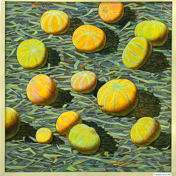 Пятерка выпускников Академии, в числе которых Аманмурат Модыев, ежегодно устраивают выставки своих работ. На одной из них Аманмурат выставил картину «Зимняя дыня». Картина запомнилась необычной подачей. Выполненная в стиле ташизма – с ритмикой повторяющихся однородных предметов – картина была выдержана в цветовой гармонии, передавала шершавую фактурность дыни и являлась дизайнерским произведением в стиле модерн.