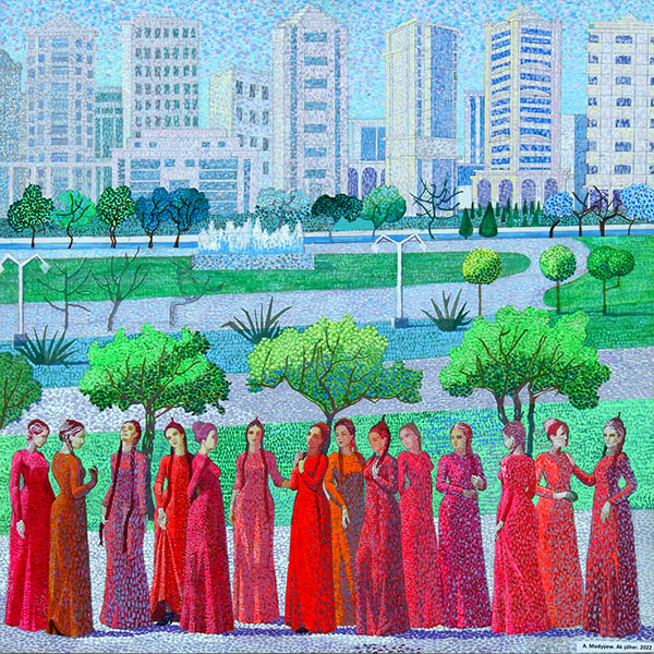 – Каждый из вас прав по-своему, – включился в разговор Аманмурат, – но я – поклонник творчества Жоржа Сёра, а вернее его обобщенности пейзажных впечатлений. Я постоянно работаю на пленэре, поэтому в моих картинах много воздуха. Своим ученикам не устаю говорить: «Природа – первый учитель», и тоже приучаю их к пленэру. У меня есть ученики, которыми я горжусь и рассчитываю на их хорошее будущее. Среди них – Джерен Бабаева, Джерен Атаева, Айболек Бабаджанова, Хатыджа Союнова.