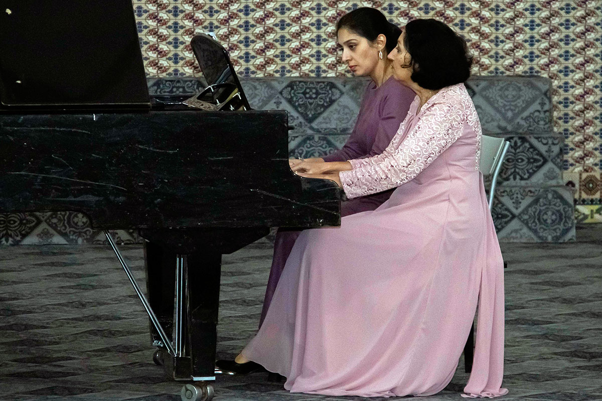Завершался концерт тремя танцами из балета «Гаянэ». Исполнение музыки проходило на двух роялях в восемь рук. За роялями - Елена Аракелян, Екатерина Дарчия, Наталья Ильичева, Рамина Гадими. На ударных инструментах выступил студент Какагельды Курбанмурадов. Конечно же, искрометный «Танец с саблями» доминировал над другими, несмотря на то, что в «Лезгинке» приняли участие зажигательные танцоры школы лезгинки «Сунжа».