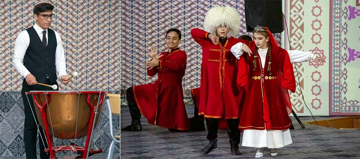 Пленительная музыка «Вальса» к драме Лермонтова «Маскарад», с которой начался концерт, очаровала всех без исключения. Ансамбль струнных инструментов под руководством Бахрама Долыева безукоризненно исполнил это произведение. Бесспорно, этот вальс - вторая вершина творчества Хачатуряна. Приятным дополнением к «Вальсу» стало элегантное выступление танцевального дуэта – Алламурада Сапарова и Энеш Эрешовой.