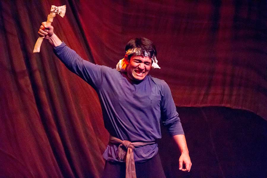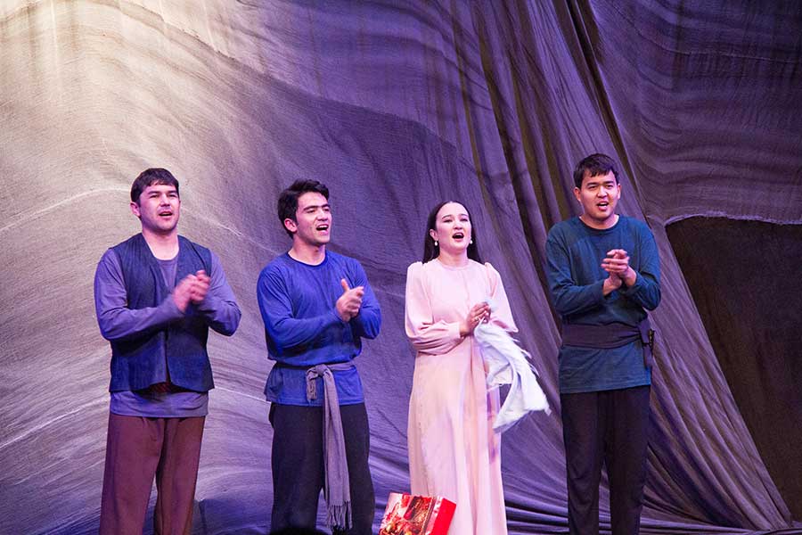Отлично была представлена гора в сценографии. Эффектно прозвучал голос злого духа гор за кулисами, в котором, наверняка, многие зрители узнали голос народного артиста Туркменистана Мухамметгулы Касымова.