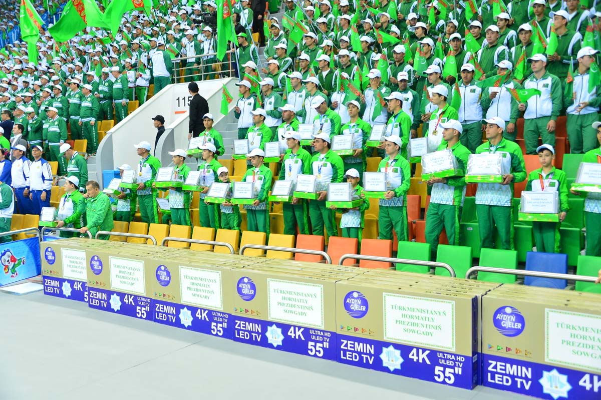 В честь героев спорта звучит Государственный гимн Туркменистана.
