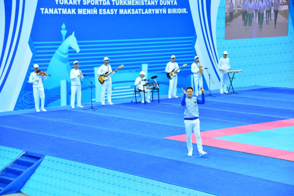 В торжественной обстановке, под бурные аплодисменты многочисленных участников церемонии отличившимся спортсменам, удостоившимся призовых мест на международных соревнованиях в январе–апреле 2024 года, вручаются ценные подарки от имени Президента Сердара Бердымухамедова и Национального Лидера туркменского народа, Председателя Халк Маслахаты Гурбангулы Бердымухамедова.