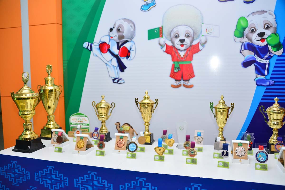 Сегодня по поручению Президента Сердара Бердымухамедова в спортивном комплексе боевых искусств Ашхабадского Олимпийского городка состоялась церемония чествования призёров, успешно выступивших на международных соревнованиях. От имени главы государства и Национального Лидера туркменского народа Героя-Аркадага спортсменам, продемонстрировавшим высокие результаты, были вручены памятные подарки и книга Президента Туркменистана «Ýaşlar – Watanyň daýanjy».