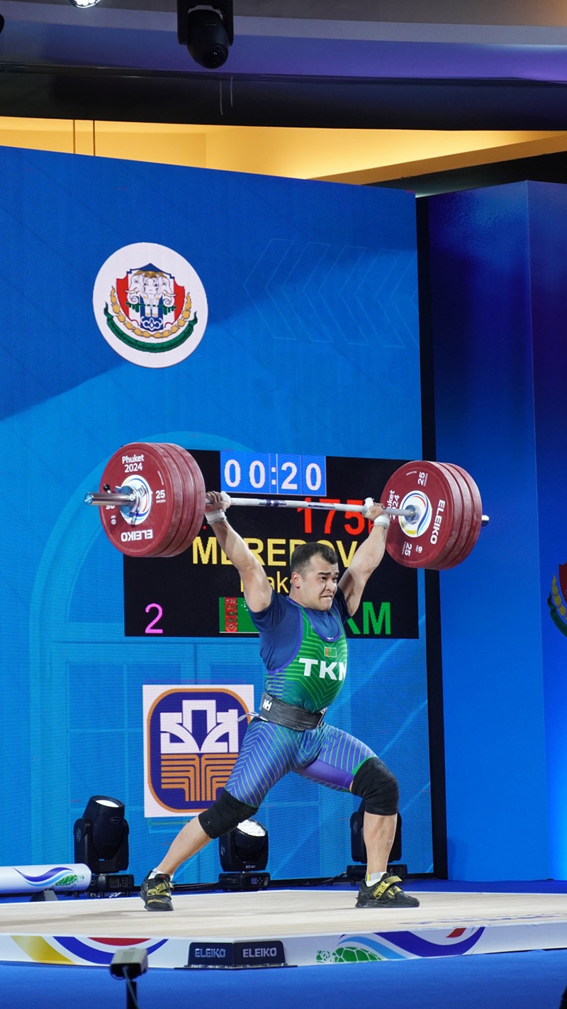 В первом упражнении наш спортсмен успешно использовал первые две попытки, подняв сначала 142 кг, а затем 146 кг. В заключительном подходе штанга весом 150 кг не покорилась, в результате чего первую часть соревнований М.Мередов завершил на 2-й позиции, отстав на 18 кг от чемпиона Азии, обладателя двух рекордов в рывке и двоеборье Азиатских игр, чемпиона Азиады в Ханчжоу (Китай) и международного турнира Гран-при II в Дохе (Катар) Ри Чон Сона (КНДР).