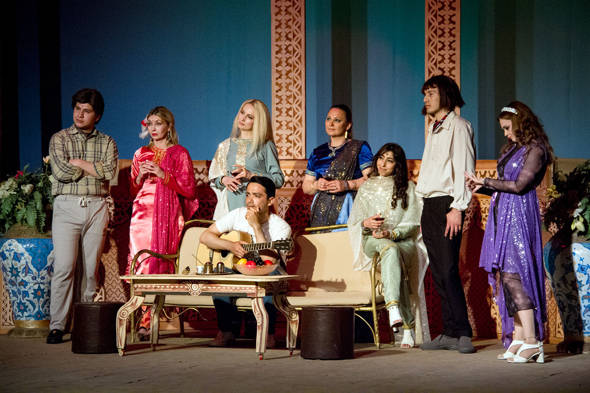 – Можно сказать, я вырос на индийских фильмах, – рассказывает Байрам, – поэтому давно вынашивал в голове постановку спектакля с симпатичным назидательным посылом. Наконец, моя мечта сбылась. Спектакль массовый – в нем задействован почти весь актерский состав труппы. Спасибо всем, и в первую очередь Аделине Назаровой, Мердану Нурмухаммедову и Бегенчу Ишангулыеву, которым удалось превратить всех актеров в танцоров.