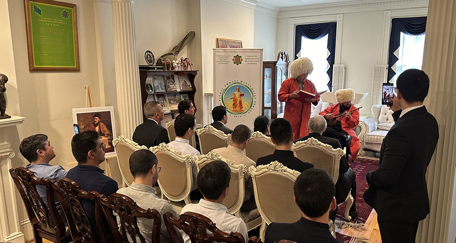 25 мая 2024 года в здании Посольства состоялся литературный вечер, собравший представителей туркменской диаспоры, дипломатов, студентов и любителей литературы. Вечер начался с приветственных слов Посла, Постоянного Представителя Туркменистана при ООН А.Атаевой и Чрезвычайного и Полномочного Посла Туркменистана в США М.Оразова.