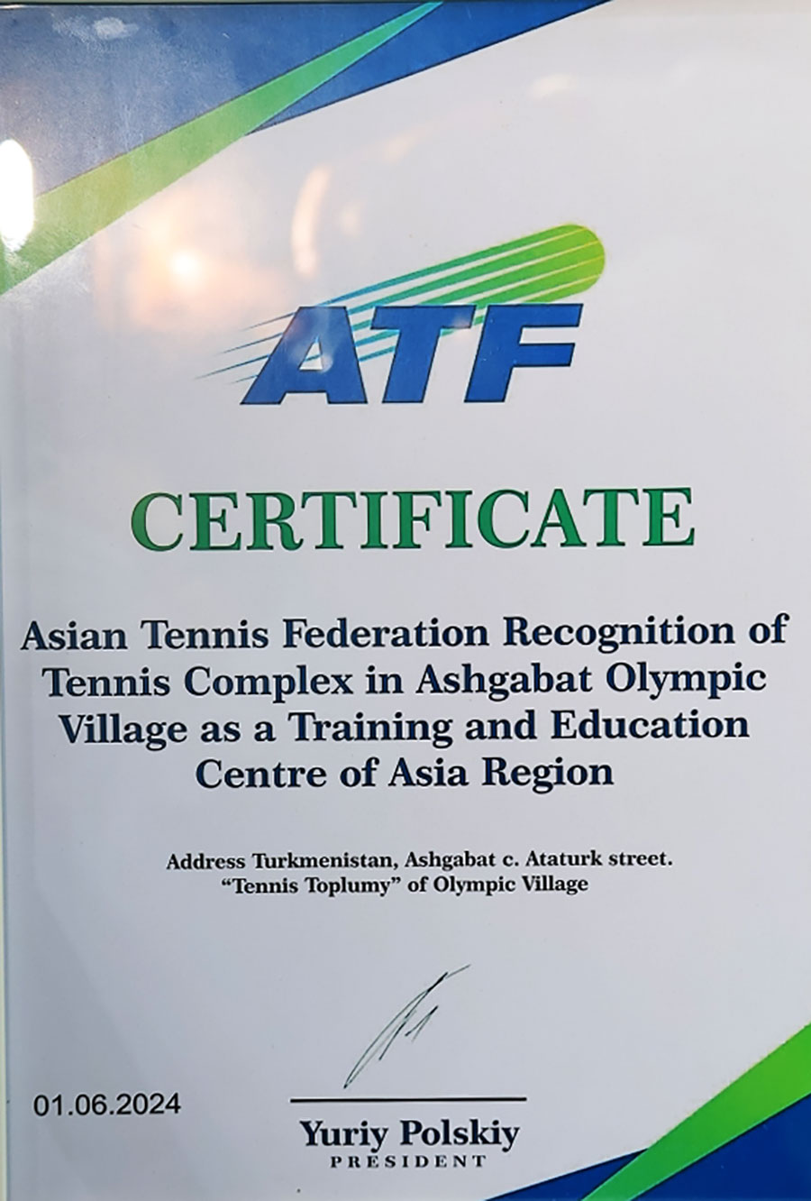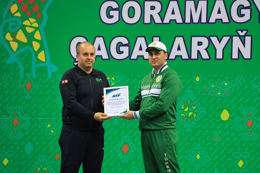 Поздравив с вручением Сертификата и пожелав успешного проведения детского теннисного фестиваля, приуроченного к Международному дню защиты детей, г-н Сейедамир Боргхеи констатировал прекрасные условия и высокий уровень организации сегодняшних мероприятий и от имени ITF выразил глубокую признательность Президенту Сердару Бердымухамедову и Национальному Лидеру туркменского народа Герою-Аркадагу за огромную поддержку и весомый вклад в развитие тенниса.