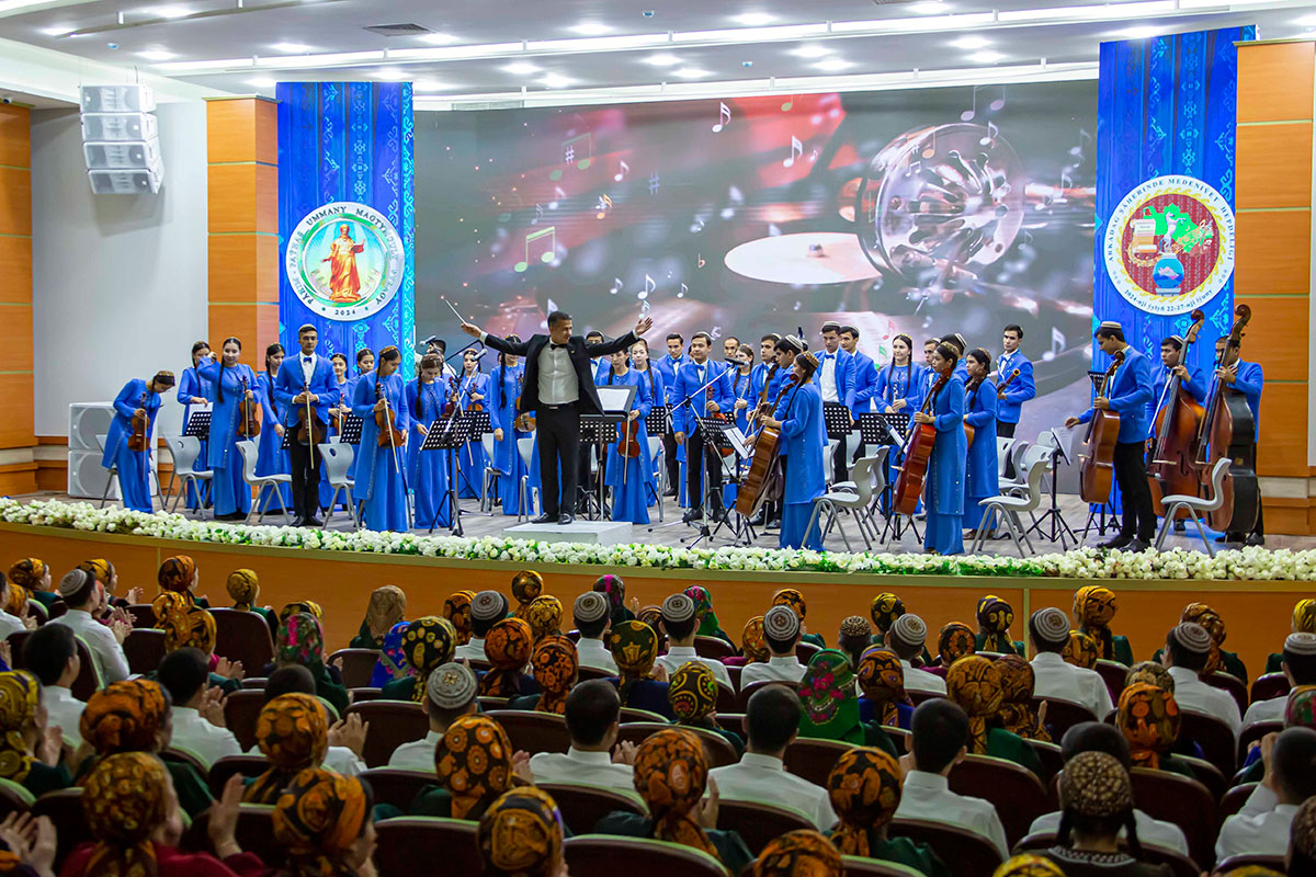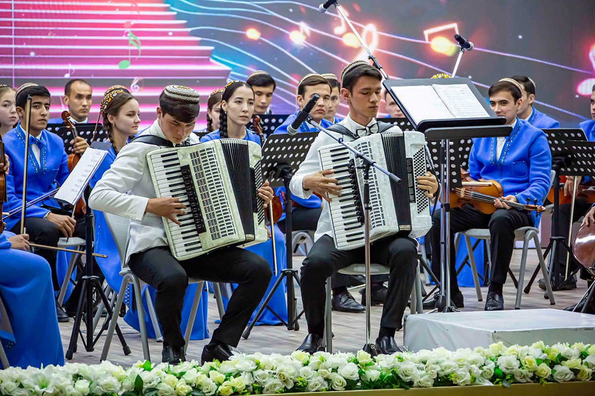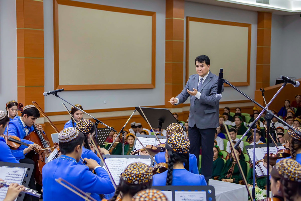 В творческий марафон праздничных мероприятий колоритно вписалось совместное выступление учащихся специальных музыкальных и средне-специальных школ искусств страны, которое состоялось в Специализированной школе искусств имени Сахы Джепбарова.
