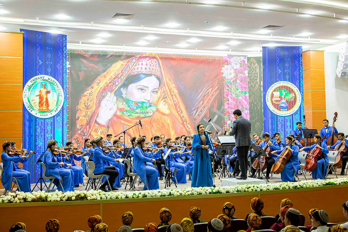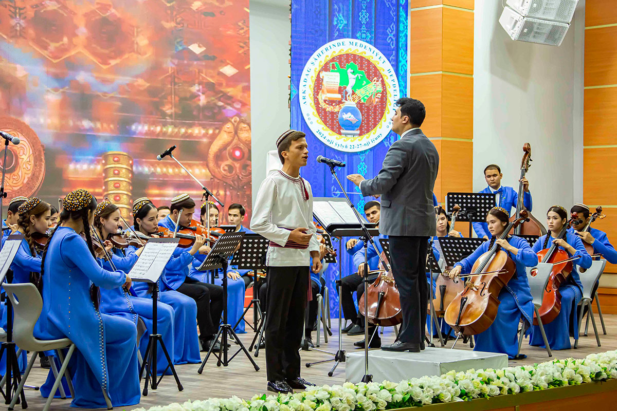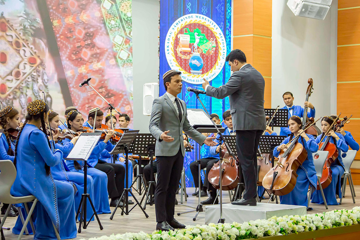 В исполнении объединённого камерного оркестра прозвучала композиция «KERWEN», посвящённая культурному наследию, являющемуся главным фактором дальнейшего духовного роста туркмен в новую историческую эпоху.
