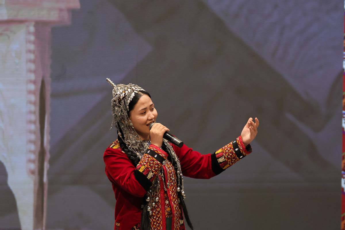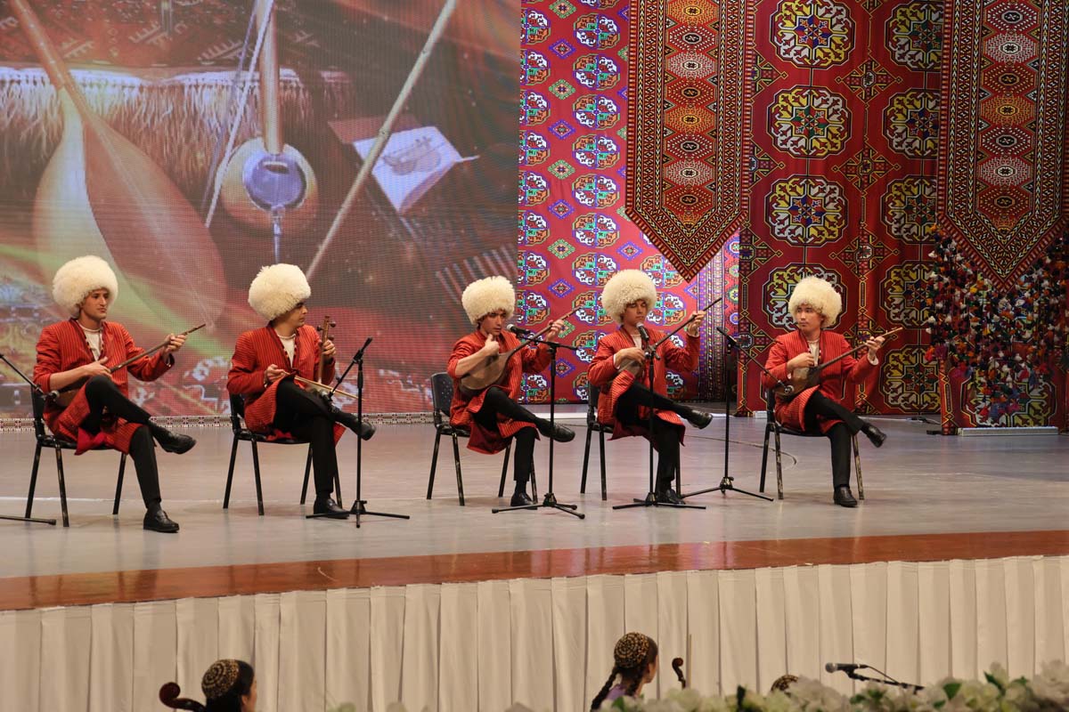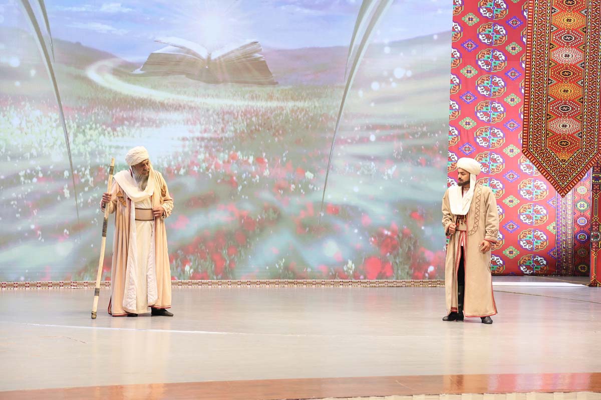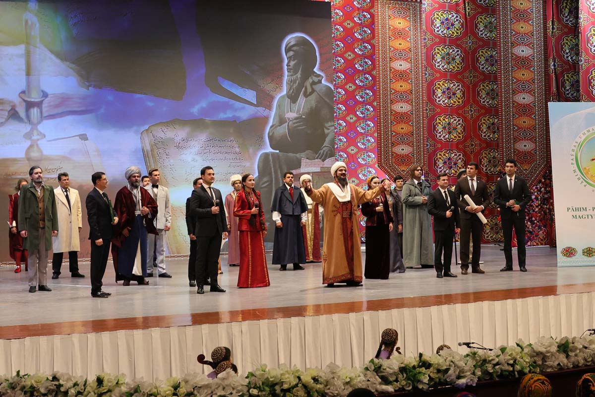 Торжественное мероприятие завершилось выступлениями мастеров искусств страны. В концертную программу вошли произведения, славящие непреходящие нравственные ценности, стремительное развитие Отчизны под руководством Президента Сердара Бердымухамедова в эру Возрождения новой эпохи могущественного государства. В исполнении молодых артистов прозвучали также песни на стихи Махтумкули на иностранных языках.