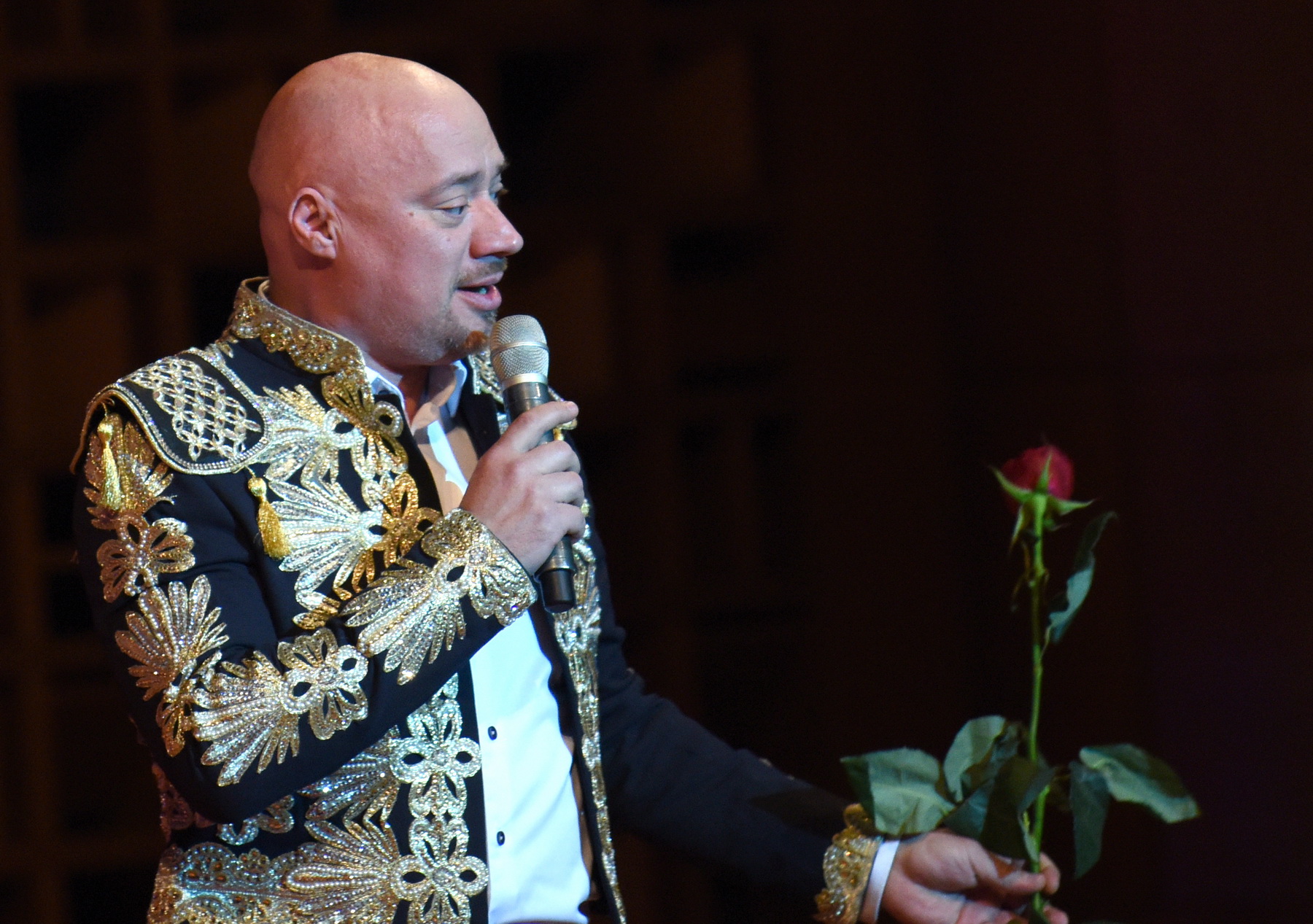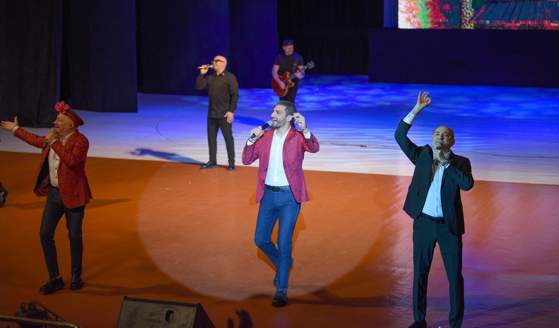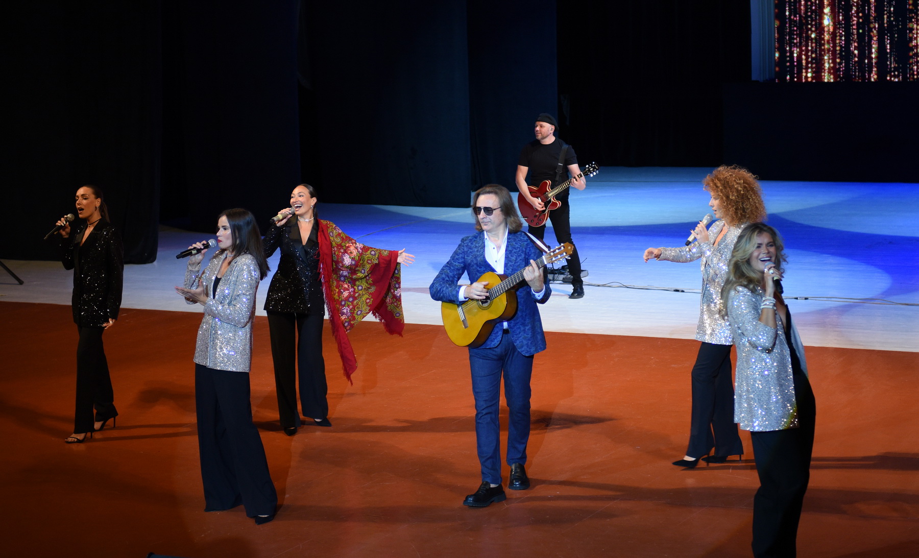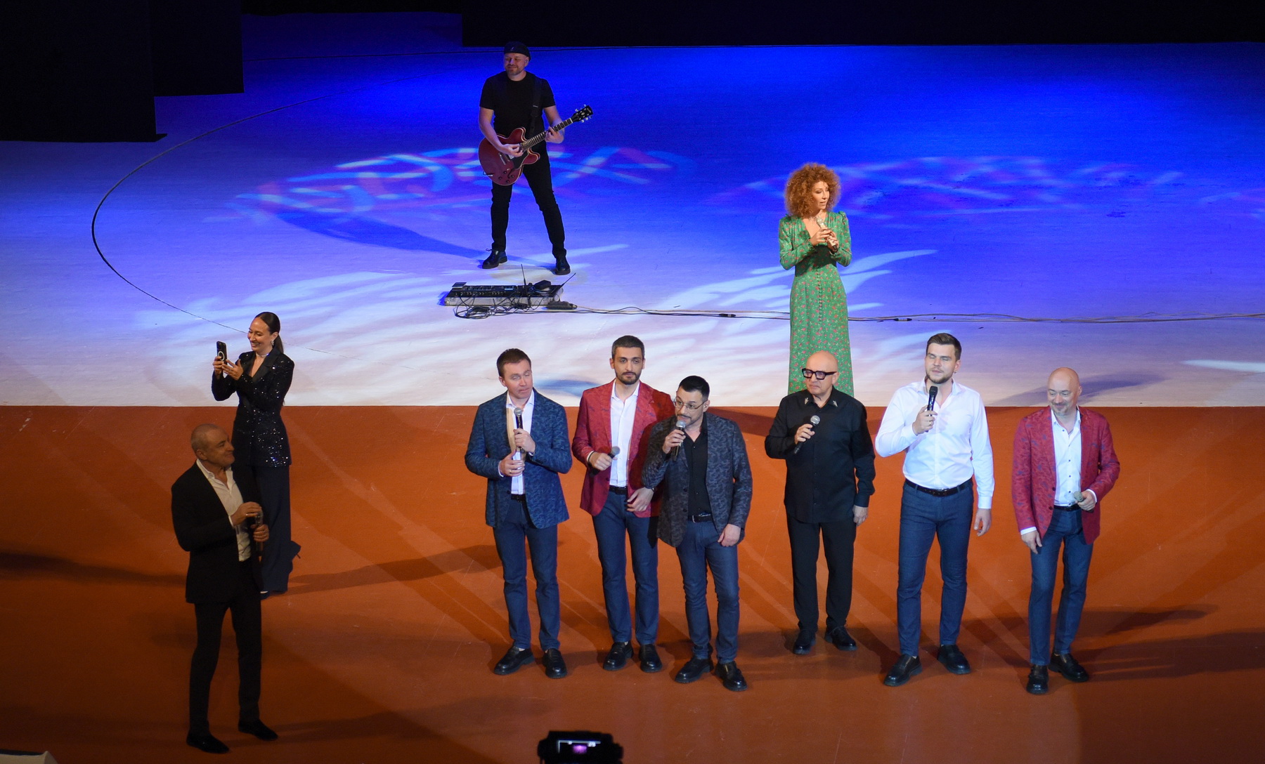 У «Хора Турецкого» своя манера выступления – солисты свободно прогуливаются по сцене, и каждое выступление выглядит как мини-спектакль, а его руководитель, он же – ведущий концерта Михаил Турецкий постоянно вовлекает публику в зале к совместному хоровому исполнению. В конце концов, это у него отлично получилось – песни «Миллион алых роз», «Катюша» и «Течет река Волга» зал и сцена спели вместе. Так что теперь каждый слушатель этого концерта может сказать о себе – я пел в Хоре Турецкого.