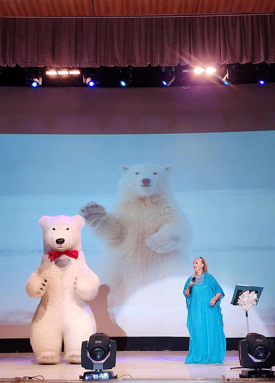 Одна из таких задорных песен «На золотом песке Майями» в исполнении лауреата премии Союза молодежи Туркменистана Елены Орешкиной особенно понравилась публике, как и песня «Чунга-Чанга» из мультфильма «Катерок». Во время исполнения песни Елена Орешкина пригласила всех ребят на сцену, и наиболее смелые из них отправились вместе с ней на удивительный остров Чунга-Чанга с изобилием банан и кокосов.