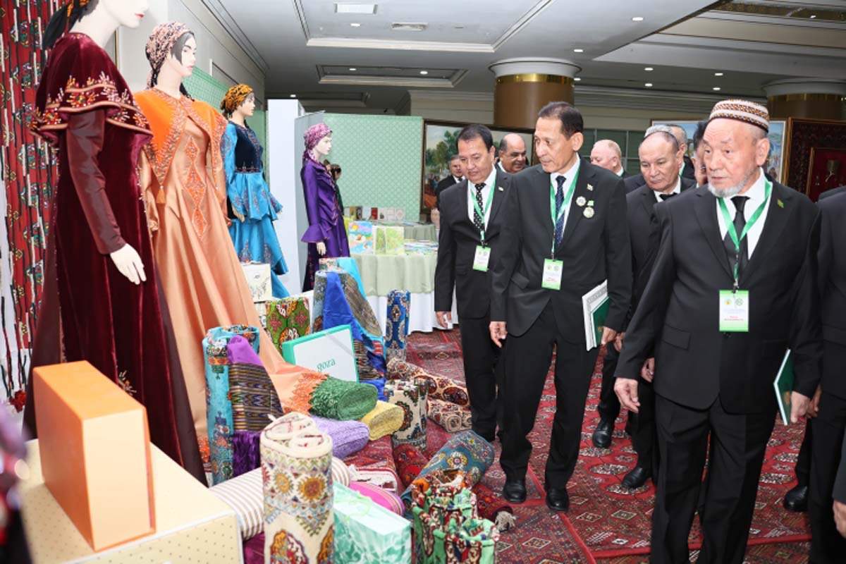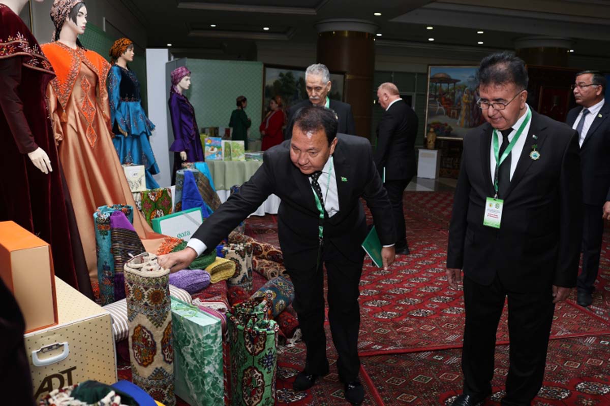 Преддверии конференции развернута выставка декоративно-прикладного искусства, во всей красе отражающая колорит и многогранность богатейшего культурного наследия туркменского народа, его историю и самобытные традиции.