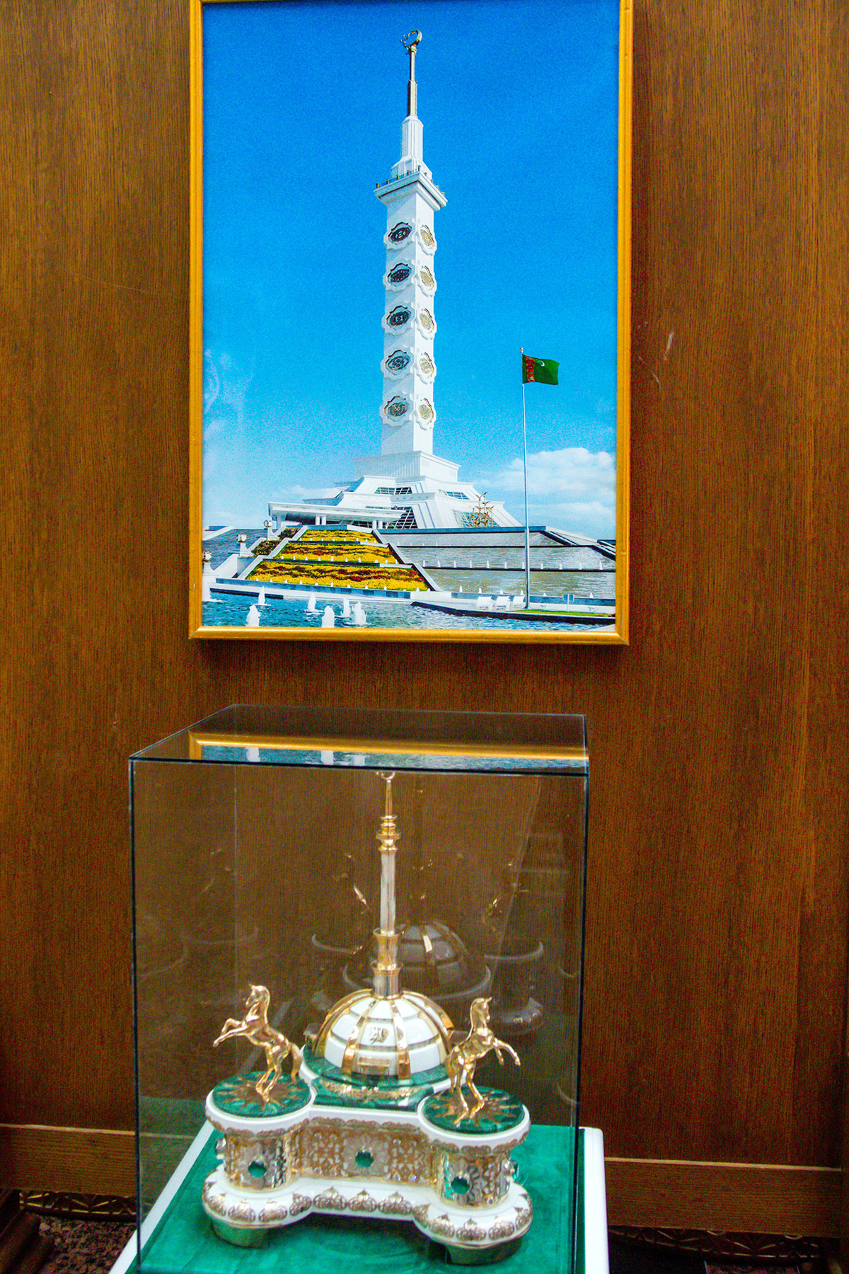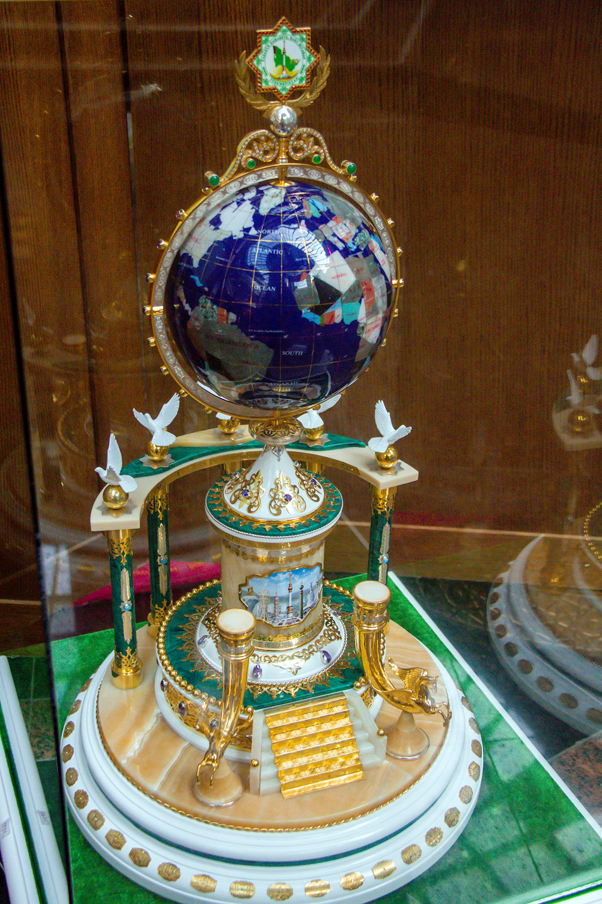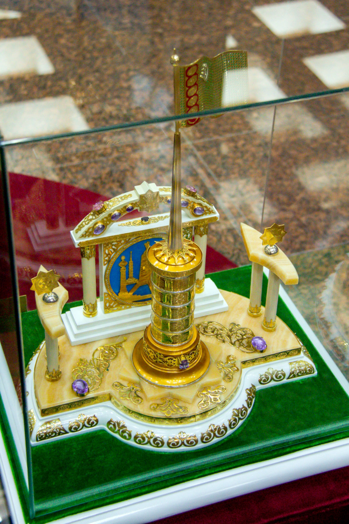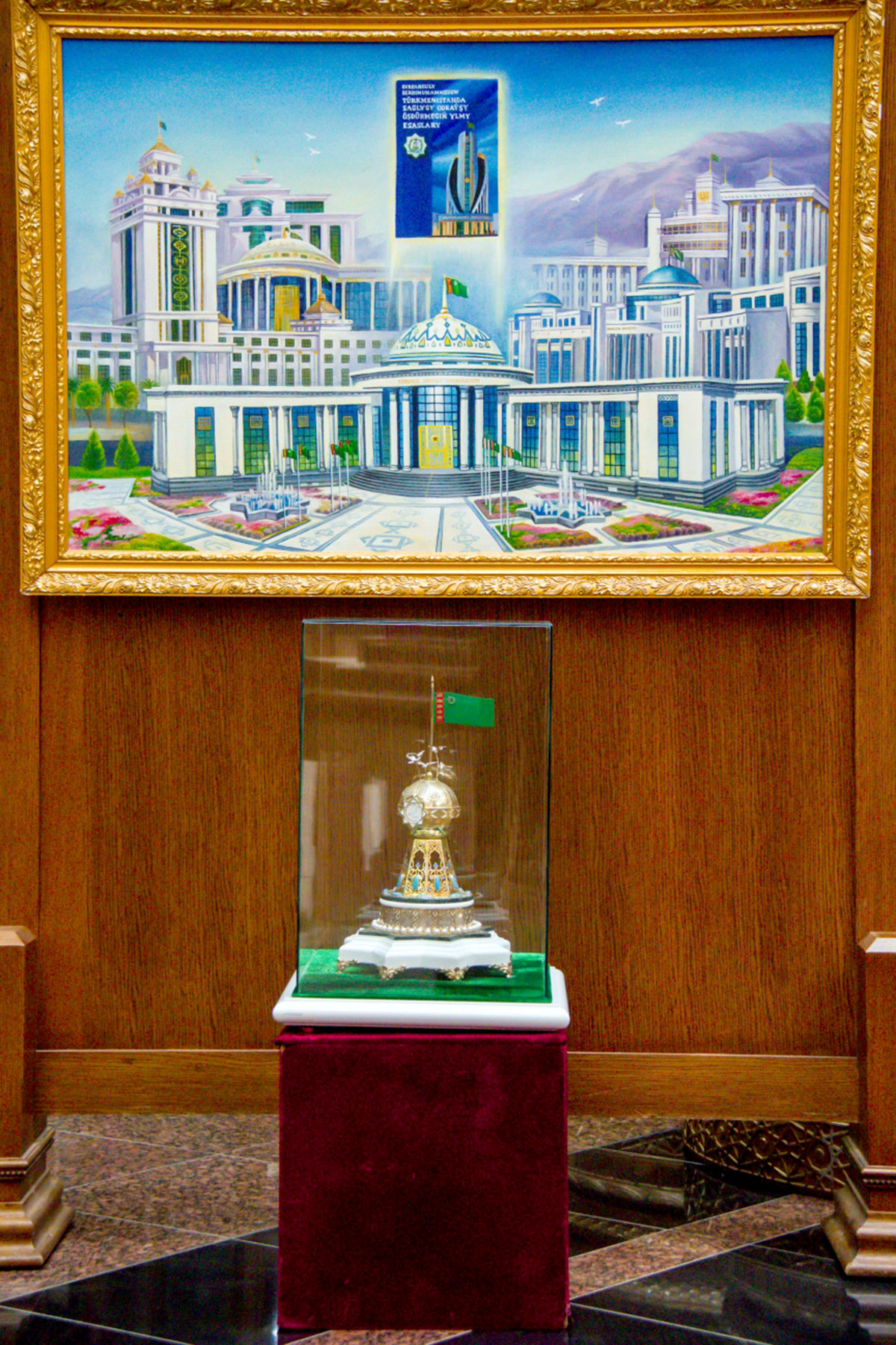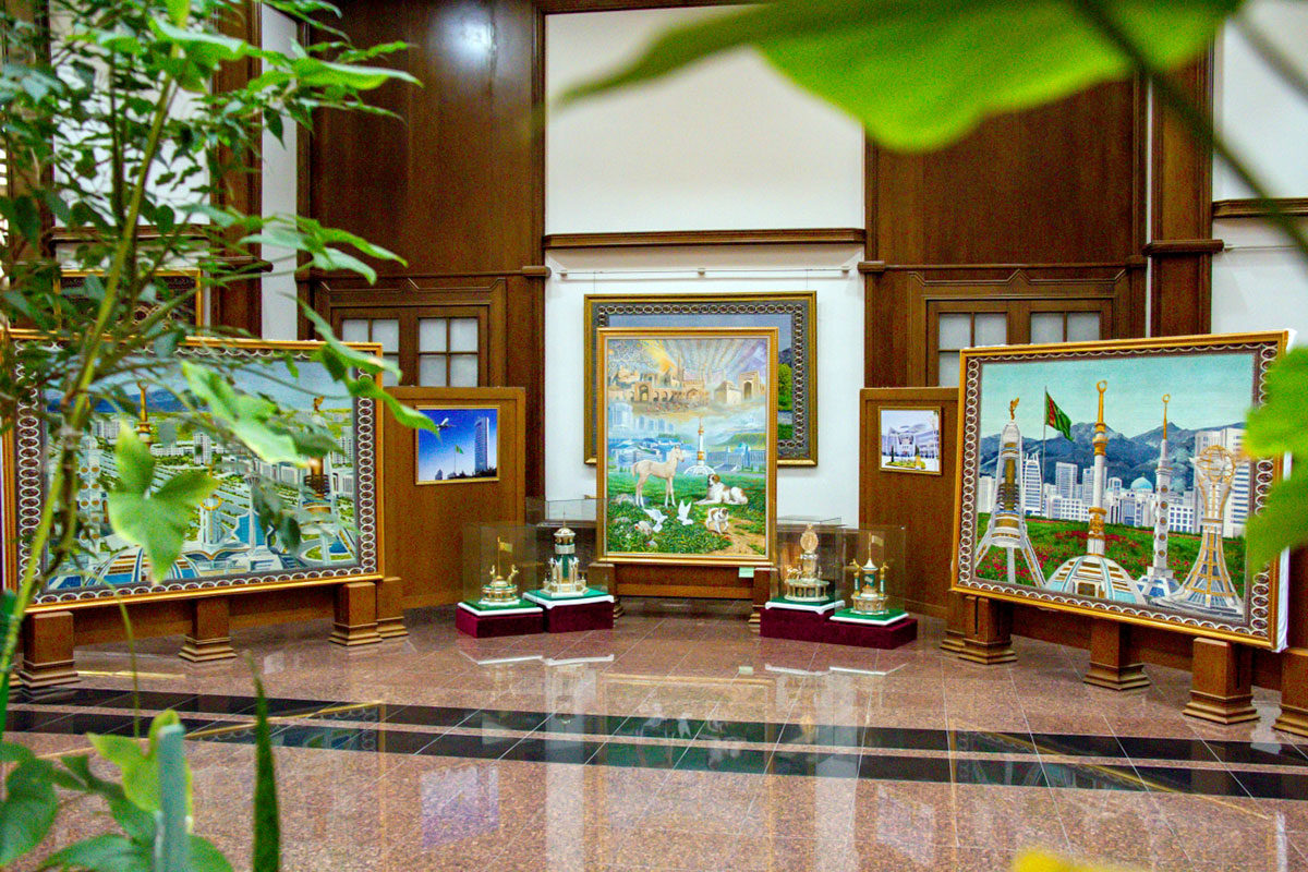 Специалисты музея раскрыли тематику праздника Независимости Туркменистана через подарки Президенту, которые содержатся в хранилищах музея. Так, практически вся площадка выставки установлена макетами культовых зданий нашей страны, выполненных из металла с позолотой и инкрустированных драгоценными камнями. Это – слияние архитектурного и ювелирного искусств. Каждое из этих произведений – подарок от делегаций зарубежных стран, посетивших нашу страну с деловым визитом.