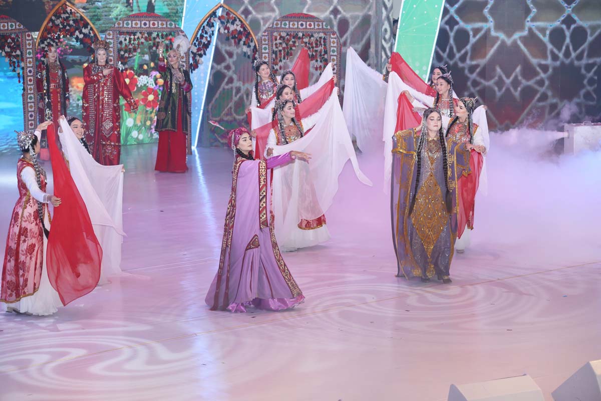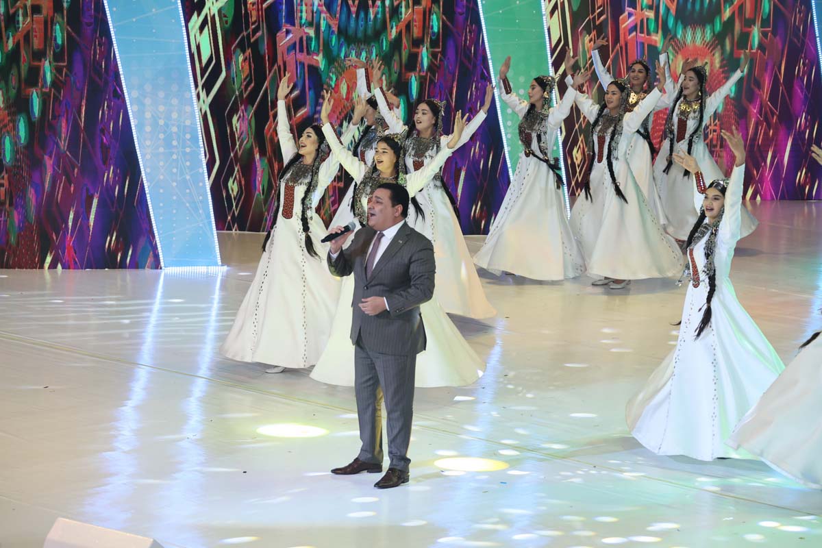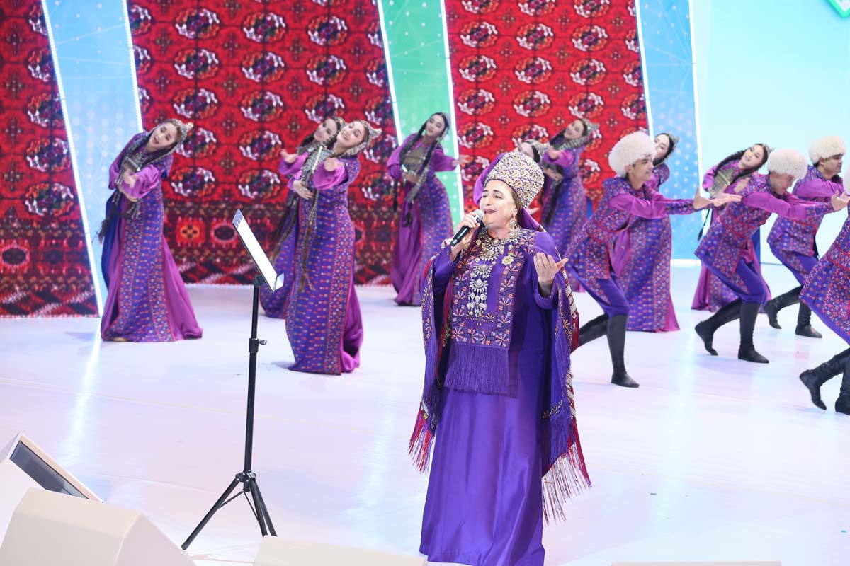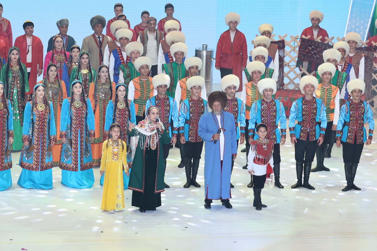 Со сцены звучали лучшие образцы национальной песенно-музыкальной классики и современные произведения, исполнялись оригинальные вокально-хореографические композиции, прославляющие Родину, её красоту и могущество. Органично вписались в праздничную программу фольклорные номера, воссоздающие пронесённые через века самобытные обычаи и традиции туркменского народа.