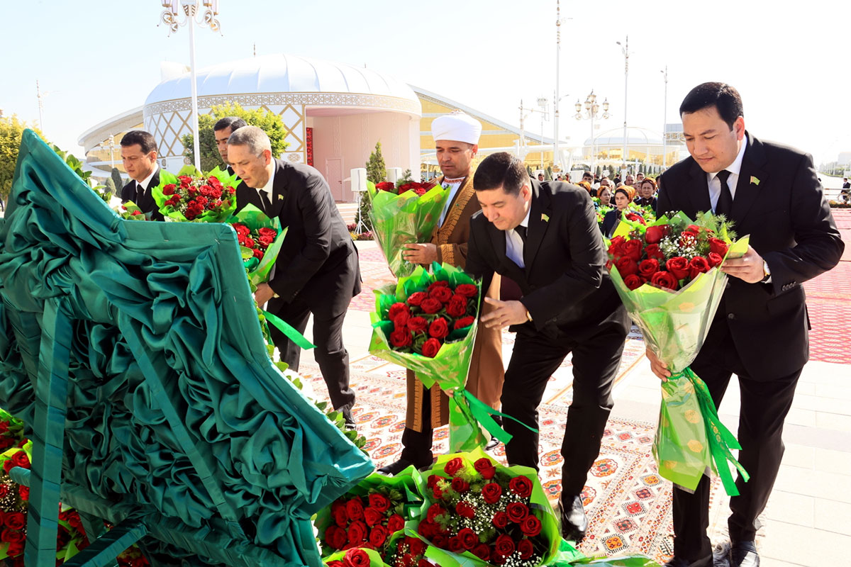 Национальный Лидер туркменского народа, Председатель Халк Маслахаты Туркменистана и Президент Республики Казахстан возложили к подножию памятника букеты цветов и отдали дань уважения великому мастеру слова.