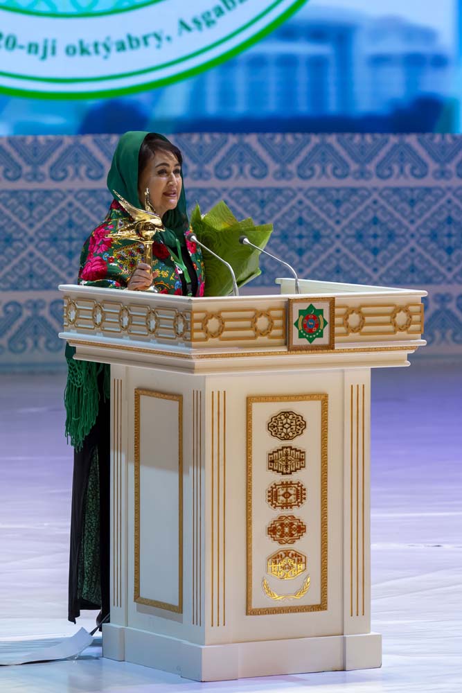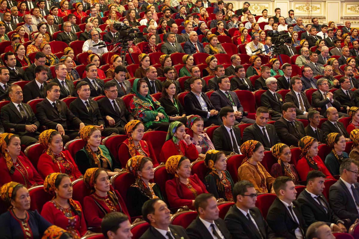 Переполняющие наших гостей чувства признательности главе Туркменского государства, Герою-Аркадагу выражались в этот вечер в творческой форме. Высоко и вдохновенно, под аплодисменты участников прозвучала под сводами великолепного зала песня, славящая прогрессивную политику Президента Сердара Бердымухамедова и Героя-Аркадага.