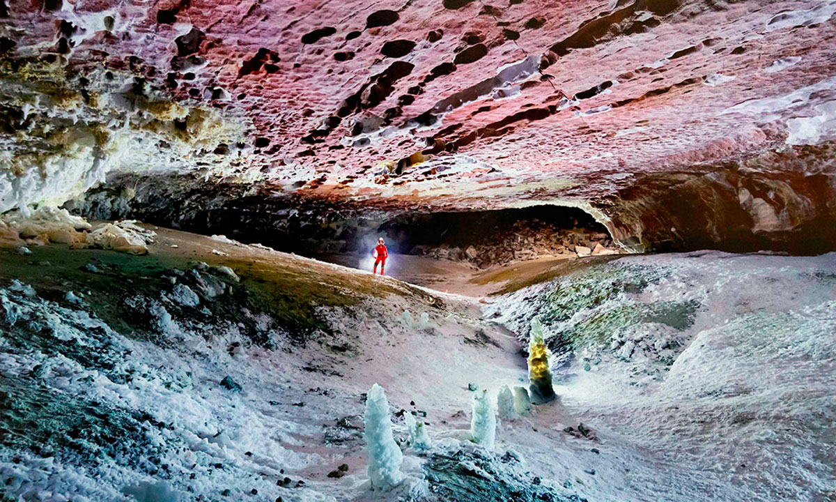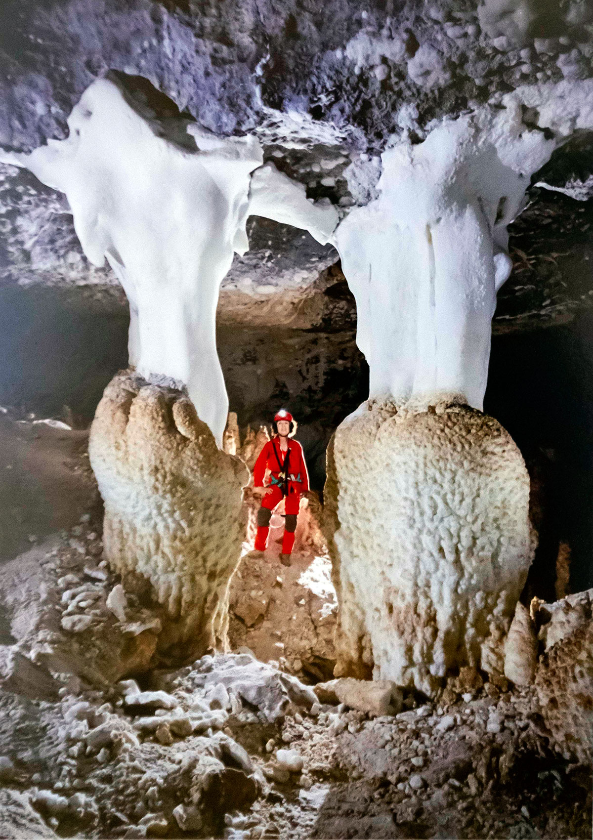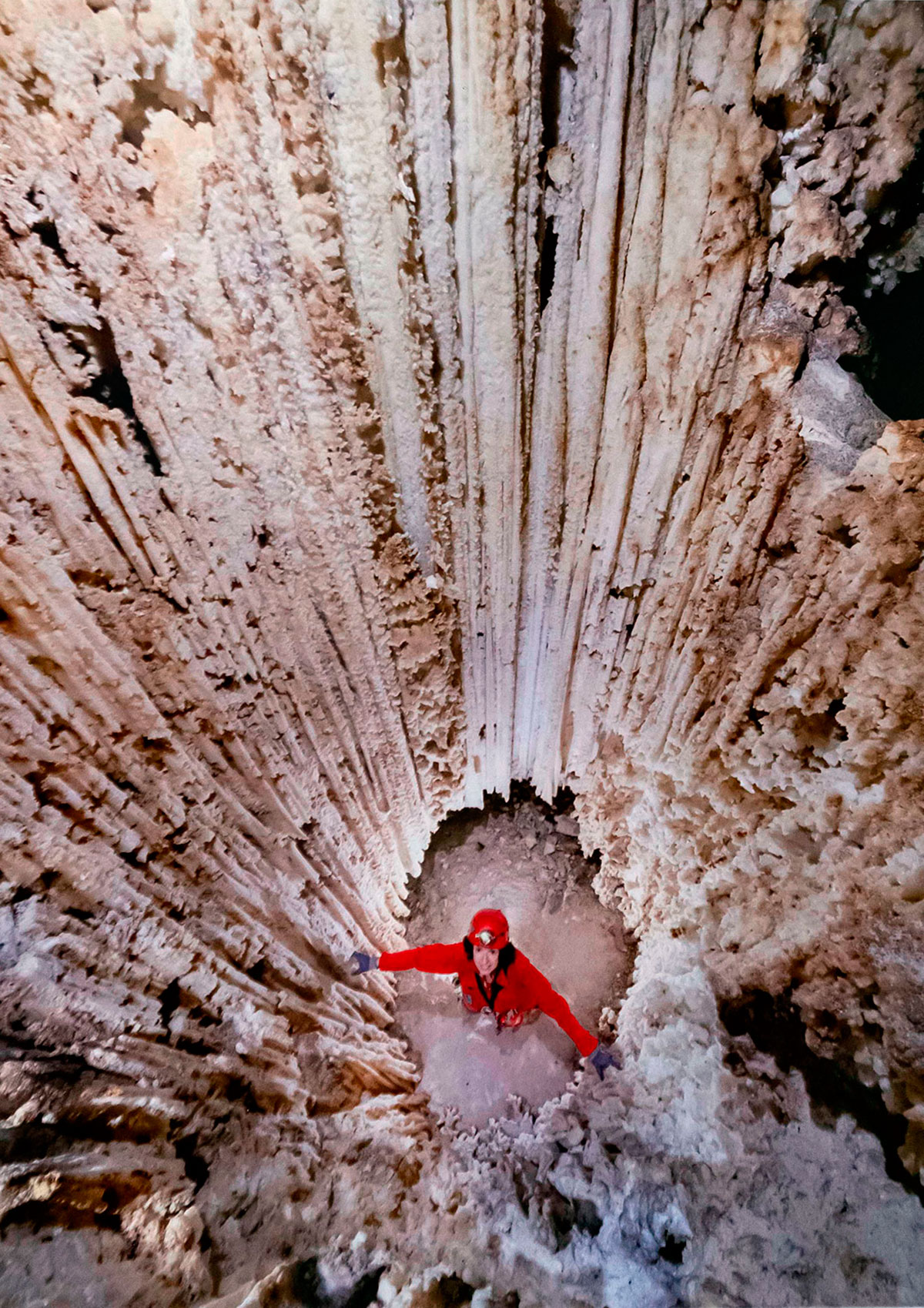 Фотосъемку пещерных особенностей проводили Филипп Кроше и Анни Гир. Филипп и Анни уже много лет работает в пещерах по всему миру. Но в Койтендагском массиве на границе с Узбекистаном они встретили редкую красоту, о которой только может мечтать спелеонтолог. Геофизическая пещера встретила их в исключительном подземном убранстве: огромные подсвечники, тончайшие иглы, изящные цветы, ажурные веточки, а также гигантские полые сталагмиты, обширные галереи с красными потолками, огромные красочные драпировки. Это настоящий праздник для глаз! В экспозицию вошло несколько фотографий пещеры Хашим-Ойук, интересной своими массивными гипсовыми конкрециами.